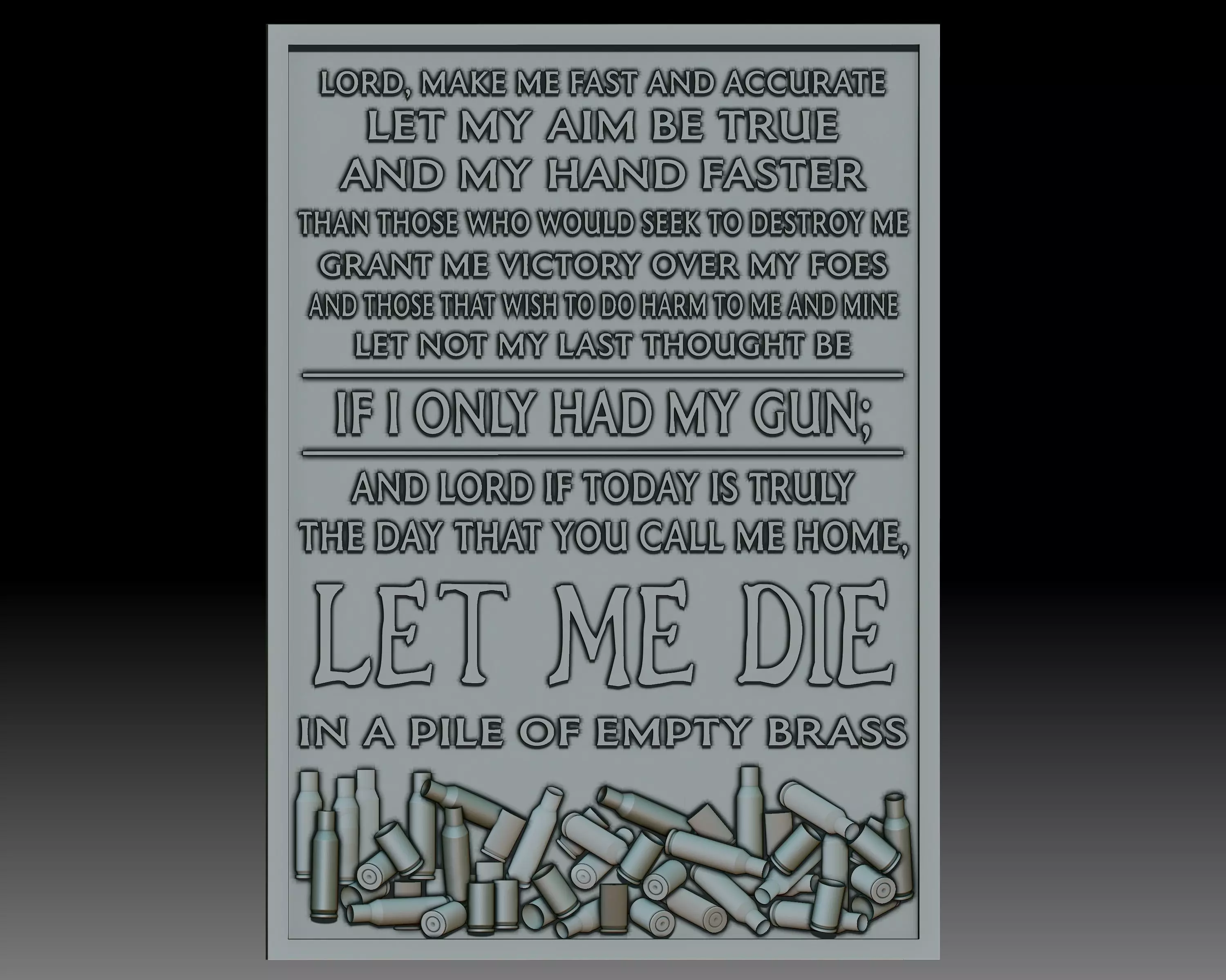 Shooter's prayer plate relief model for CNC router or 3D printer.