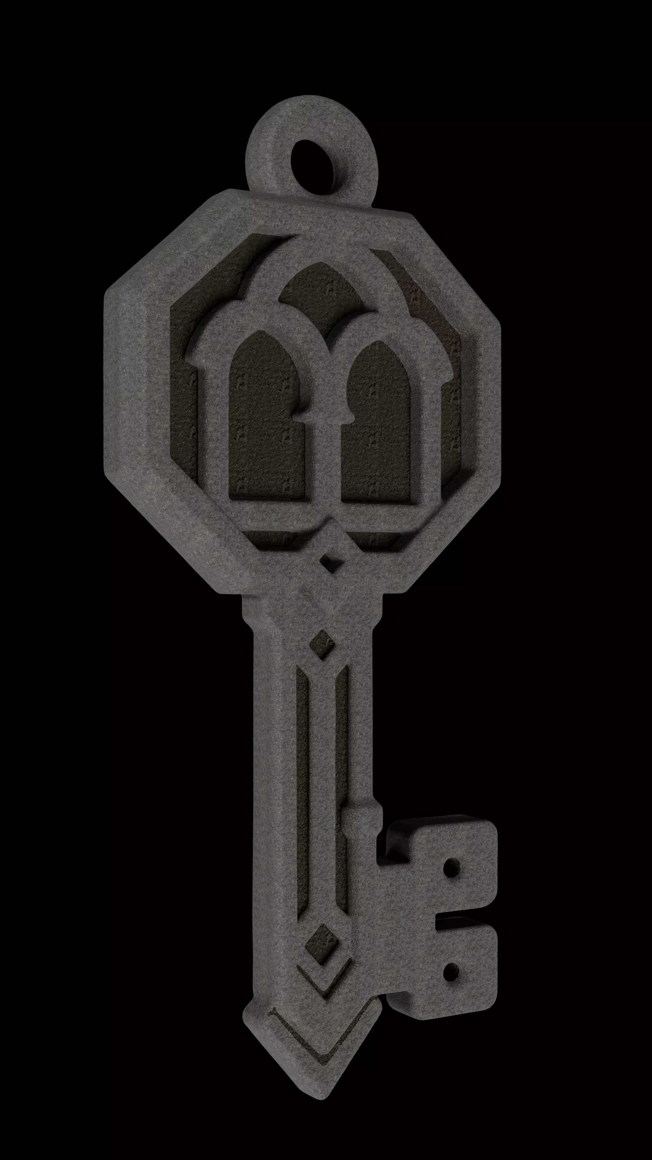 The head of the key is made in the form of a Gothic shield with a double arch reminiscent of a cathedral window.