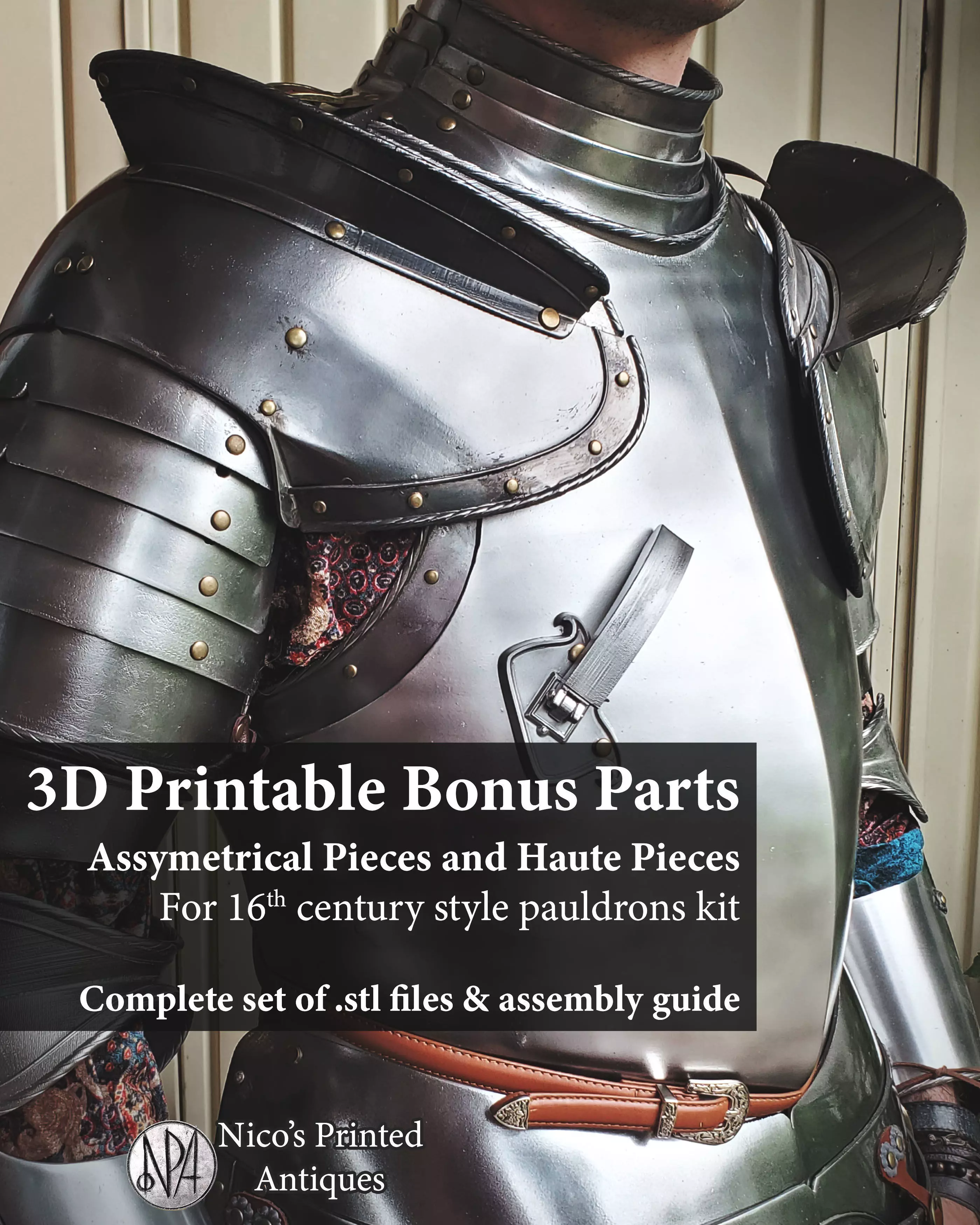 => You will need the basic 16th century pauldron file set available on my store. These parts are only variations and you'll need the rest to print a complete piece of shoulder armor.