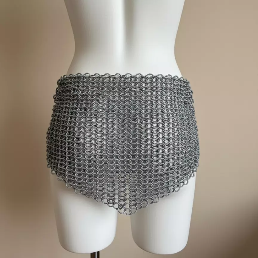 This unique skirt features a multi-level construction, offering versatile style and comfort, and is intricately designed to include spiral connectors for a corset-style closure. It pairs elegantly with the Chainmail Corset for a complete look. Ideal for cosplay, LARP, or fantasy enthusiasts, this skirt is one-piece, easy to wear, and adjustable to fit various sizes.