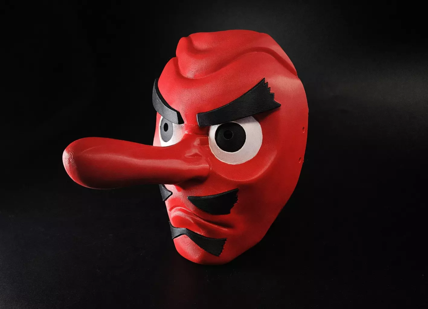 This is a digital 3D printable model of Sakonji Urokodaki’s Mask from Demon Slayer. Color-separated pieces (multicolor printer not needed) and rubber band attachment included.