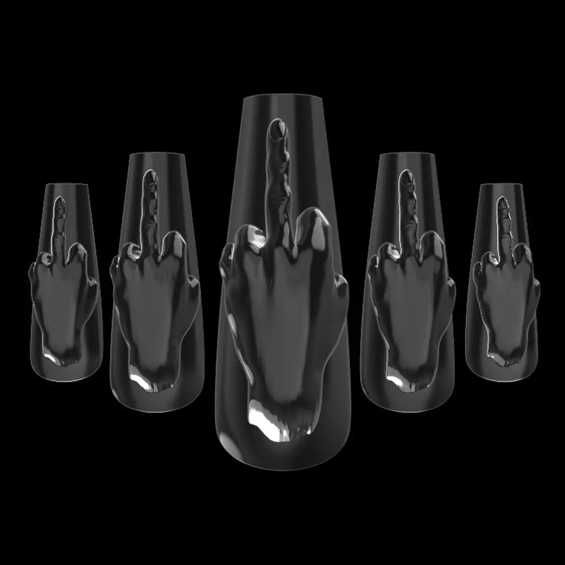 Introducing this 3D Ready-To-Print Nail Set with a 3D Fuck You Design: Elevate your nail game with this unique collection of 11 different nail sizes, meticulously crafted for a perfect fit. The set includes a variety of sizes to cater to diverse preferences. What sets these nails apart is the captivating Fuck You design, adding a touch of edgy elegance to your nail aesthetics. Embrace individuality and make a bold statement with these 3D printed nails, curated for those who appreciate the fusion of technology and style. Upload the file in any Slicer Software and start printing!