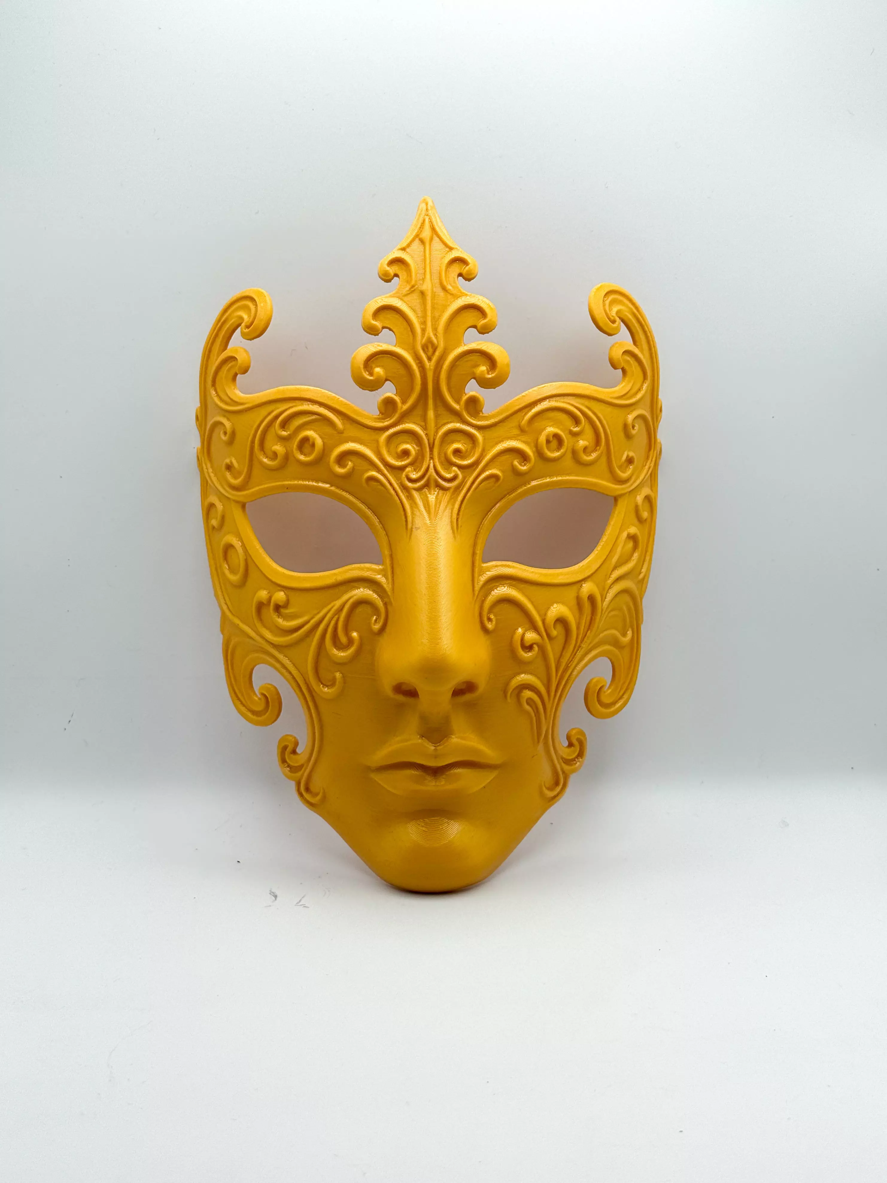 Elegant Venetian-style masquerade mask featuring symmetrical baroque scrollwork, raised ornamental flourishes, and a refined half-face silhouette. Suitable for cosplay, masquerade events, wall decor, or high-detail 3D printing projects.