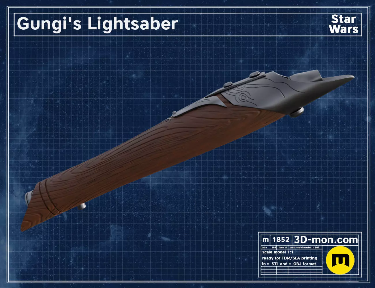 This is a digital 3D printable model of Gungi lightsaberr from the Star Wars Universe.The download contains a 3D model ready to be 3D printed on a 200 mm print bed.