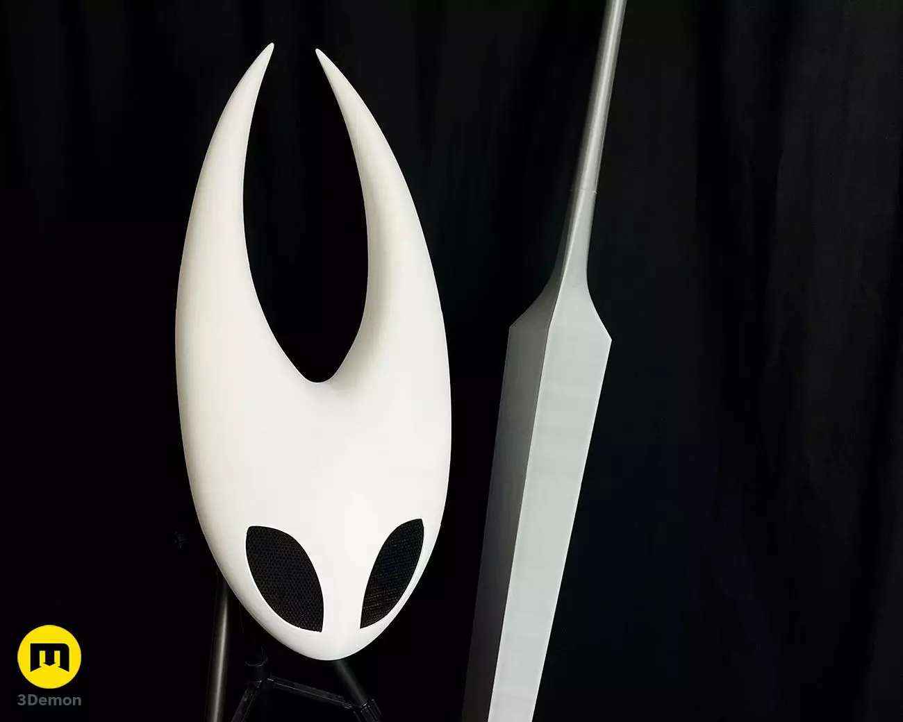 This is a digital 3D printable model of Hornet’s Head from the Hollow Knight: Silksong game.Designed as a wearable cosplay helmet with a detachable back piece.