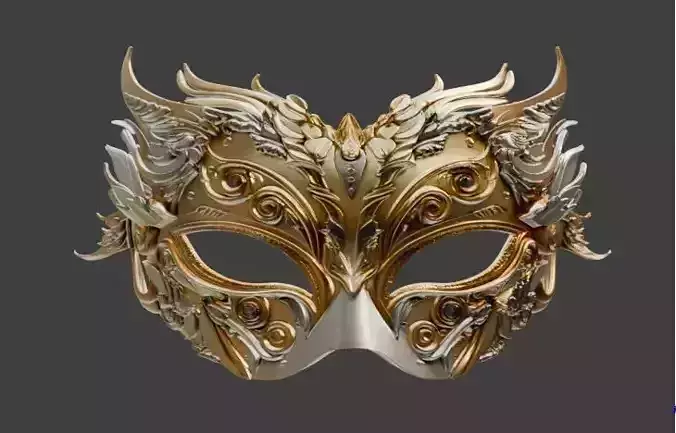 This premium 3D model features an elaborate masquerade mask inspired by baroque and fantasy aesthetics. The design showcases flowing ornamental patterns, layered metallic detailing, feather-like extensions, and symmetrical sculpting that gives the mask a luxurious and dramatic presence. Fine engravings, smooth curves, and sharp edges make it ideal for high-end decorative prints, cosplay props, wall decor, festival masks, and collector displays.