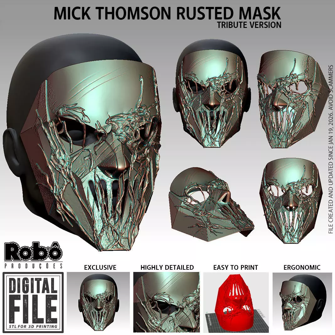 Mick Thomson Rusted Mask - Tribute - STL model 3D print file 3D print model