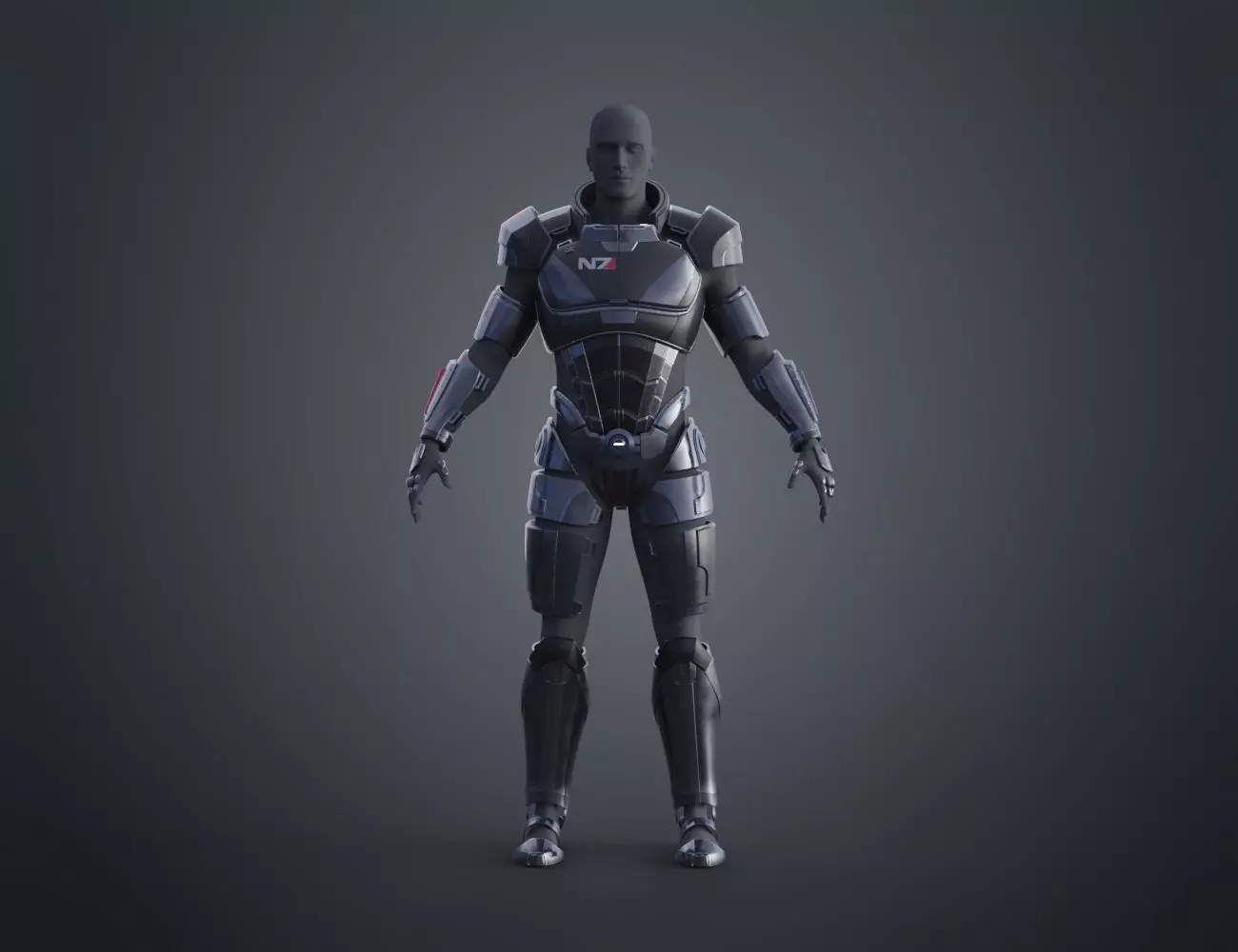 This is a digital 3D printable model of N7 Male Shepard Armor from Mass Effect.