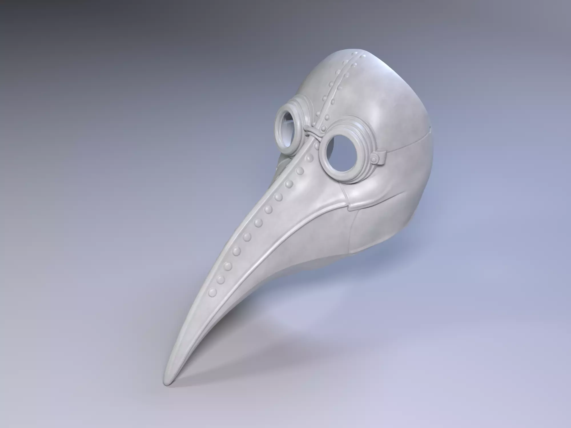 A striking plague doctor mask design inspired by classic Renaissance-era medical attire, featuring the iconic long beak, rounded eye frames, and aged stitched surface details. This model has a bold silhouette that makes it ideal for display, cosplay projects, or decorative printing. The front and side structure give it a clean, recognizable form while preserving the mysterious historical character of the original design.