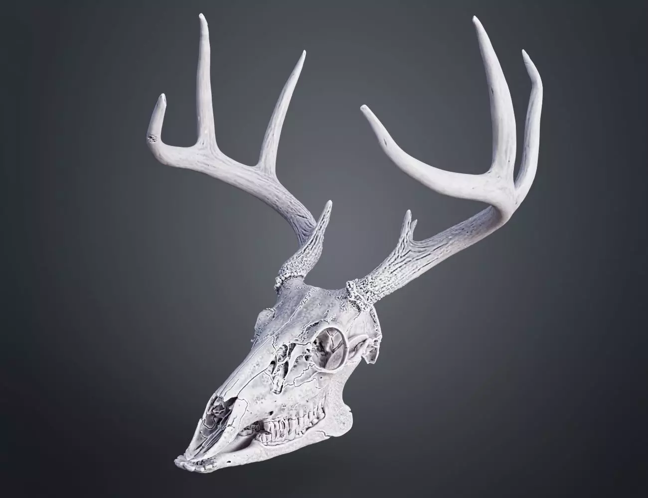 This is a digital 3D printable model of an Anatomically correct white-tailed deer skull based on a scan.
