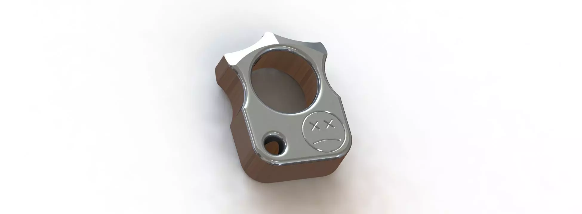 Afrankart knuck 3d model + working drawing full ready project to manufacturing (look real photos) or just render, easy to scaling 3d model + working drawing to order this part in any cnc milling workshop or DIY. We made it from brass\aluminium\titanium\wood\acryl\steel ect. Also 3d printable. I can explain you how to mill this part and technical part of project and all nuances. Calculated for 1 finger, 53x38x17 mm, 180 gramms in brass. Local examination confirms that this is not a cold weapon. World price on this souvenir in brass - 65$, you can made it from 330 gramm brass workpiece and 20 minutes.
