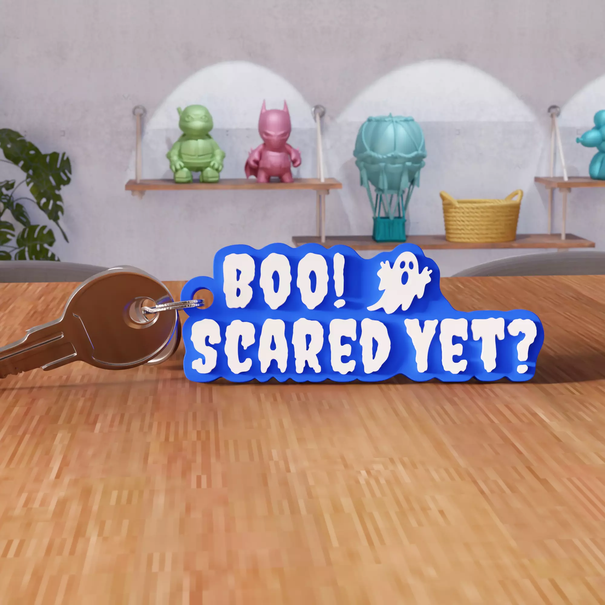 This 3D Boo! Scared Yet? keychain is a spooky and playful Halloween accessory featuring a cute ghost design. Perfect as a festive decoration, a fun key ring, or a seasonal gift, it brings a touch of humor and fright to your celebration. The STL file is designed in Blender 3D and is compatible with most 3D printers for easy at-home creation. Whether you want to surprise friends, decorate your keys, or add a ghostly vibe to your holiday collection, this digital model is an ideal Halloween-themed accessory.