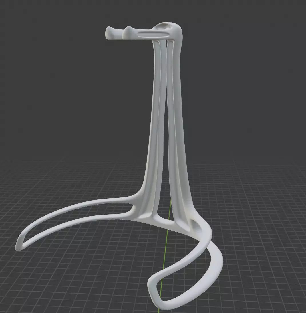 A headphone stand with a sleek design, made to save overall printing material while retaining both functionality and an interesting look.