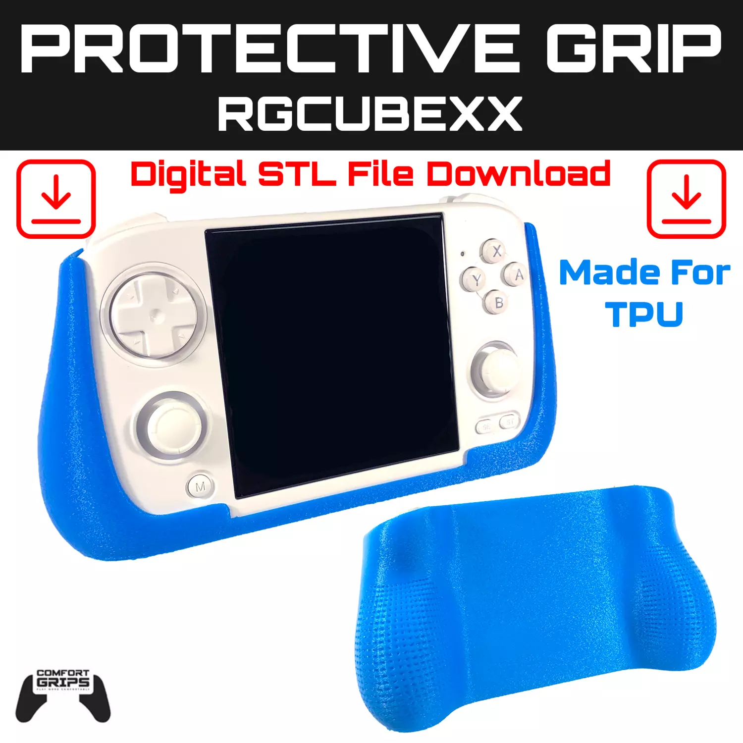 This is a high quality comfort grip case file for the Anbernic RGCUBEXX model! Once printed, this flexible rubber grip will give your emulator more of a controller feel and make it much more comfortable to use for long periods of time. This file is made to be printed in flexible TPU material, the grip will not be able to be installed on the device with hard plastic! If you experience hand cramping, fatigue, or just want a more comfortable gaming experience on the RGCUBEXX, this grip case file is for you!