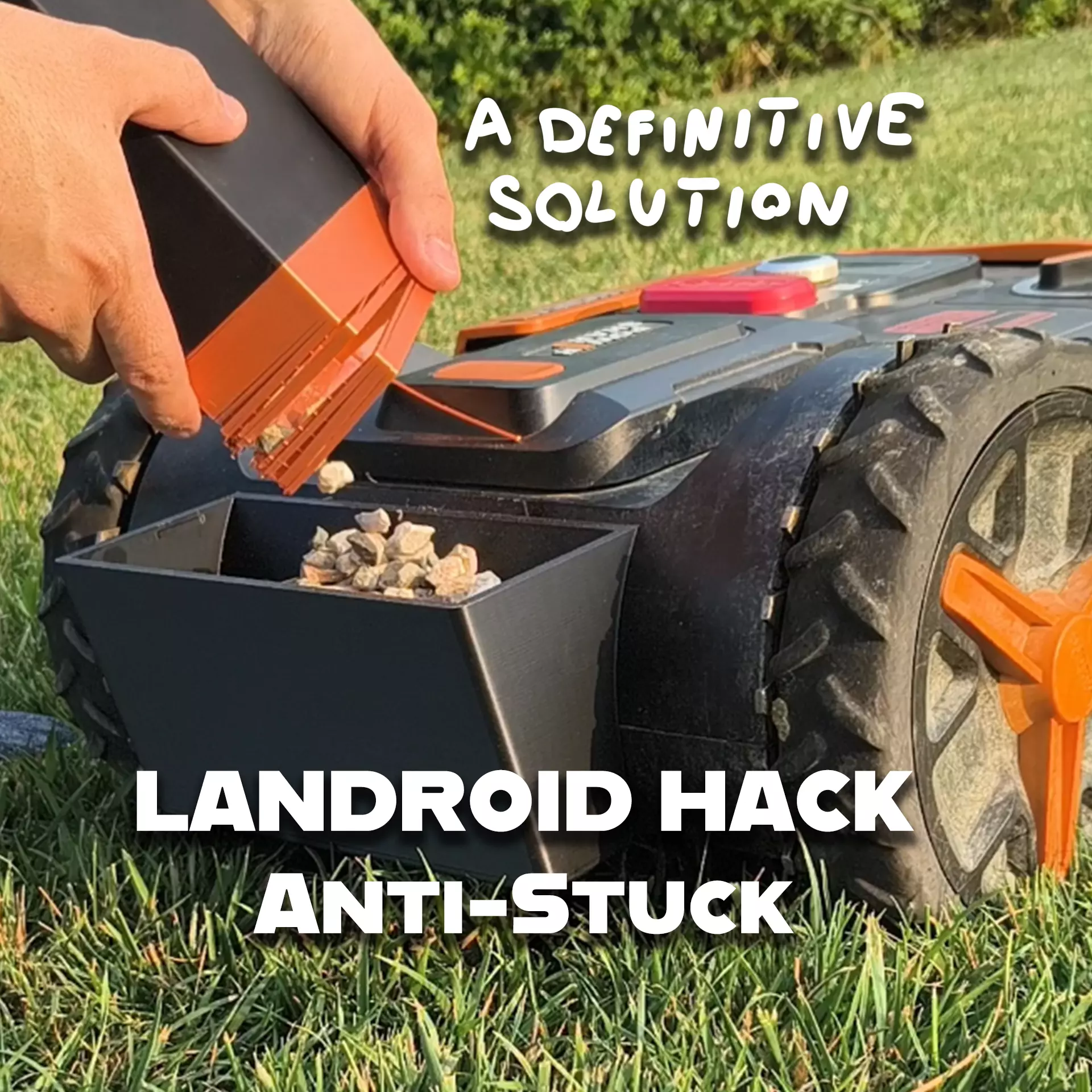 3D model descriptionWhy I created it:I have this Landroid at home, and it kept getting stuck every day.Since I installed this container full of gravel, it no longer gets stuck.