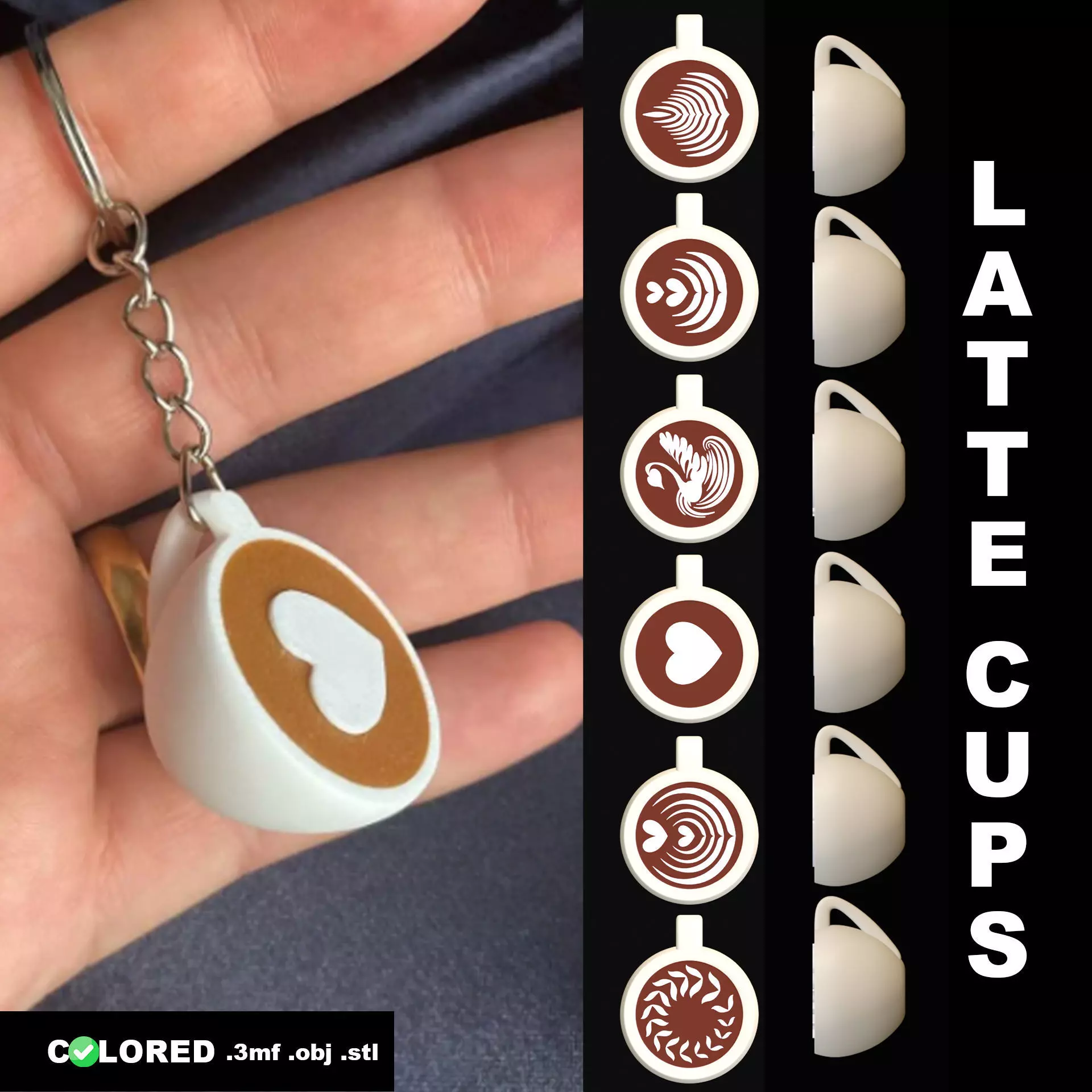 Includes:6 unique latte art designsSeparate keychain ring holeReady-to-print files in .STL, .OBJ, and .3MF formats