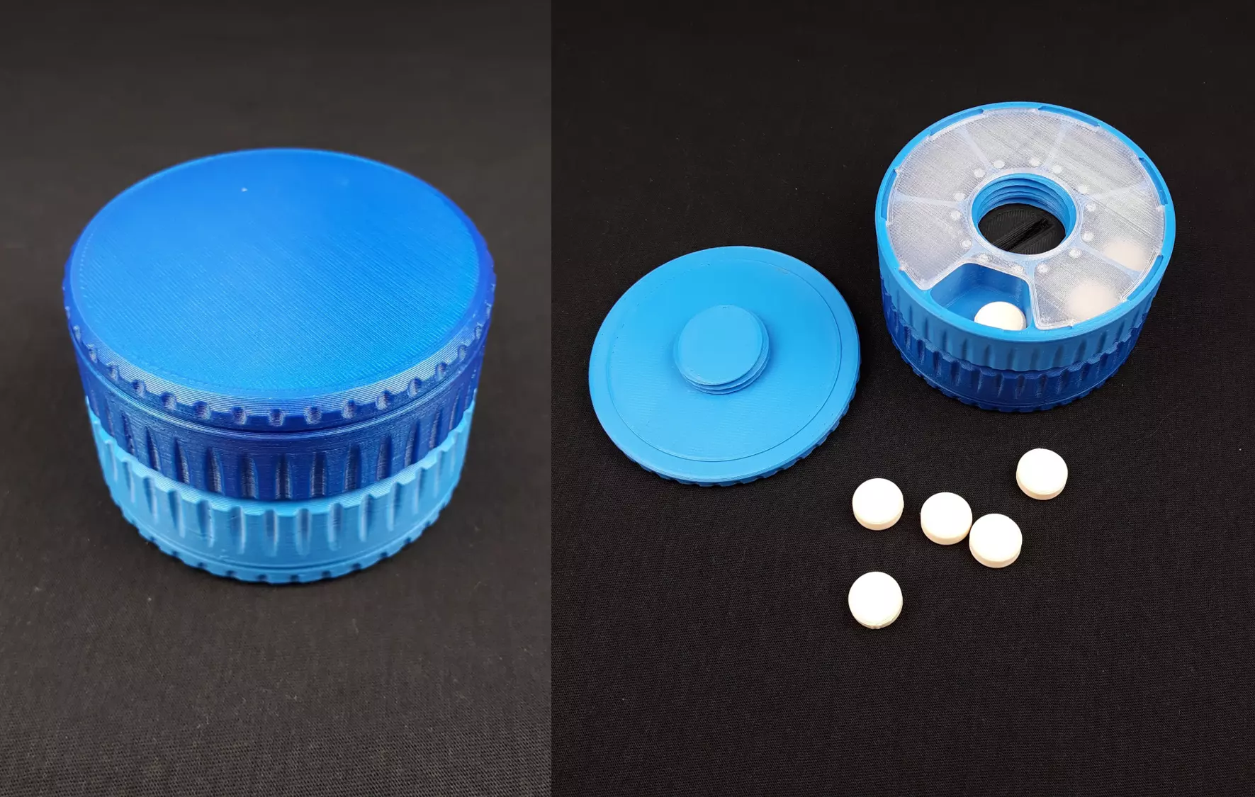 If you print another box and screw, you will be able to screw them together (bottom to bottom) and double the capacity of the box. Then it can be used for 14 days or morning and evening pills.The connection screw has a big slot to insert coin or key to tighten it properly.