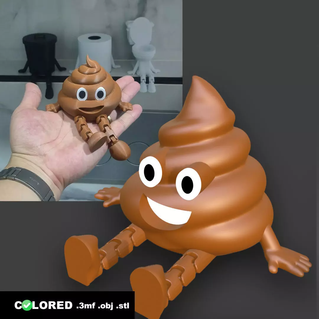 Meet the Poop Emoji Flexi Figure!This adorable and hilarious articulated poop emoji is the perfect addition to your 3D print collection. With its movable arms and legs, it's both a fun decoration and a playful fidget toy.
