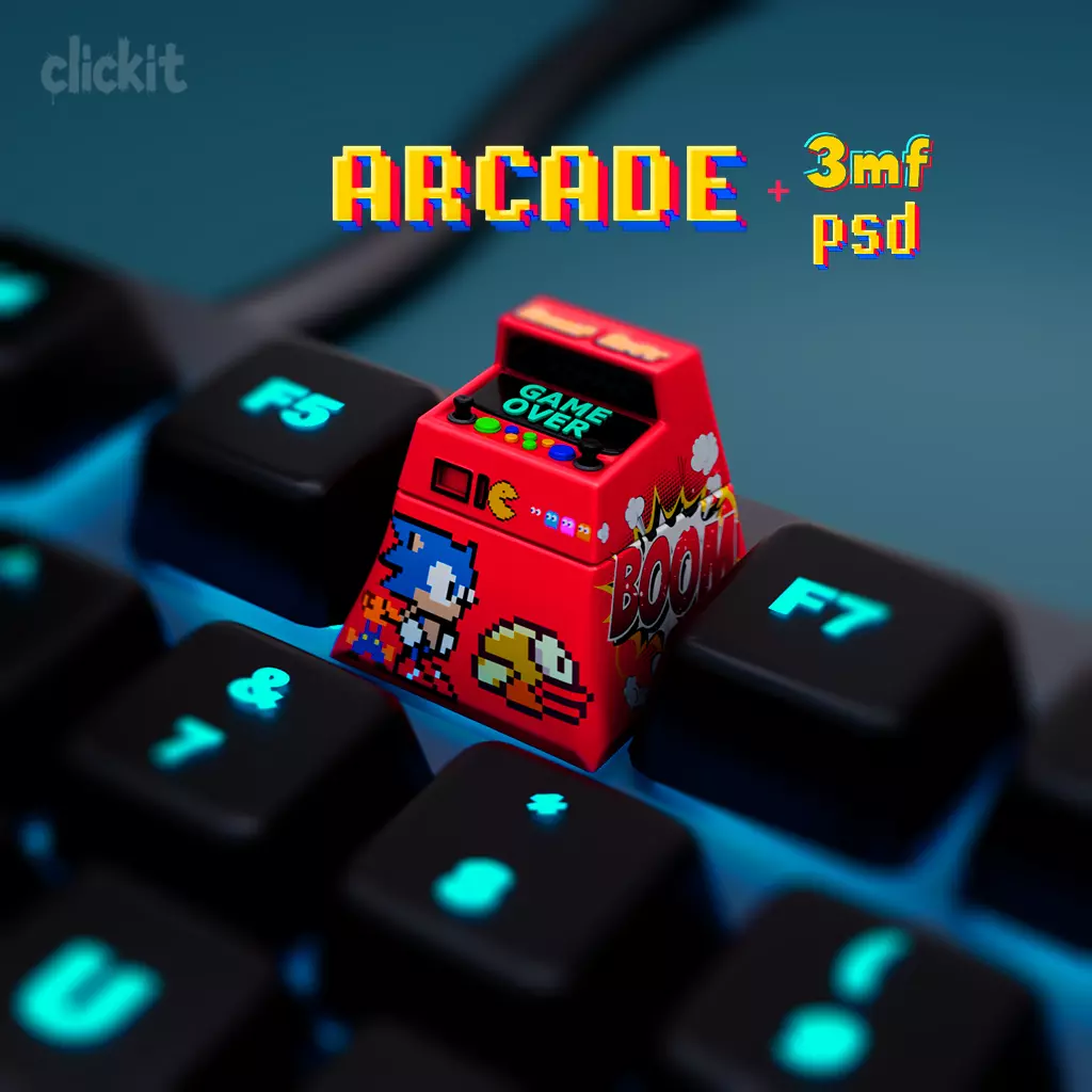Bring a touch of retro gaming to your mechanical keyboard with this Arcade Machine Artisan Keycap. Designed as a miniature arcade cabinet, this highly detailed 3D printable model is perfect for customizing mechanical keyboards. The retro-style design features a screen and control buttons, making it a must-have for gamers, collectors, and fans of vintage arcades.
