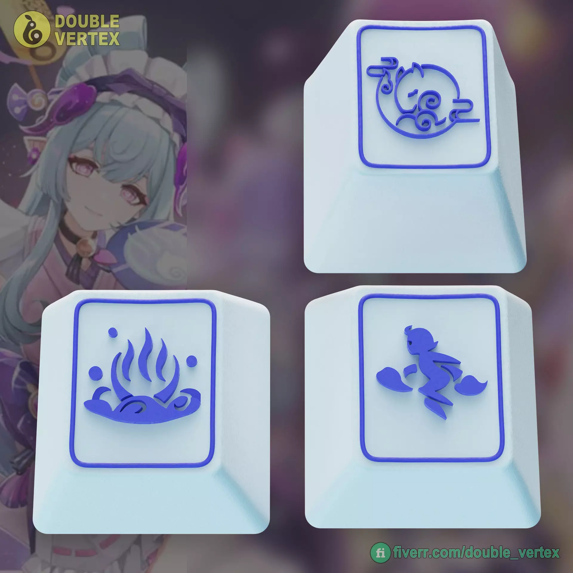 Want a fully customized keycap design with your own character or theme? Visit my Fiverr page for custom orders: www.fiverr.com/double_vertex/