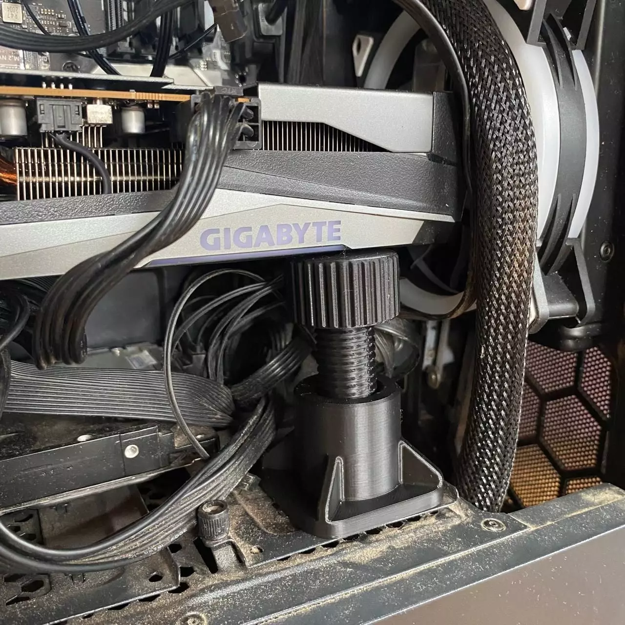 3D model descriptionAn adjustable GPU holder is a specialized bracket designed to prevent graphics card sag, protecting the motherboard's PCIe slot and ensuring stability for heavy, modern GPUs.