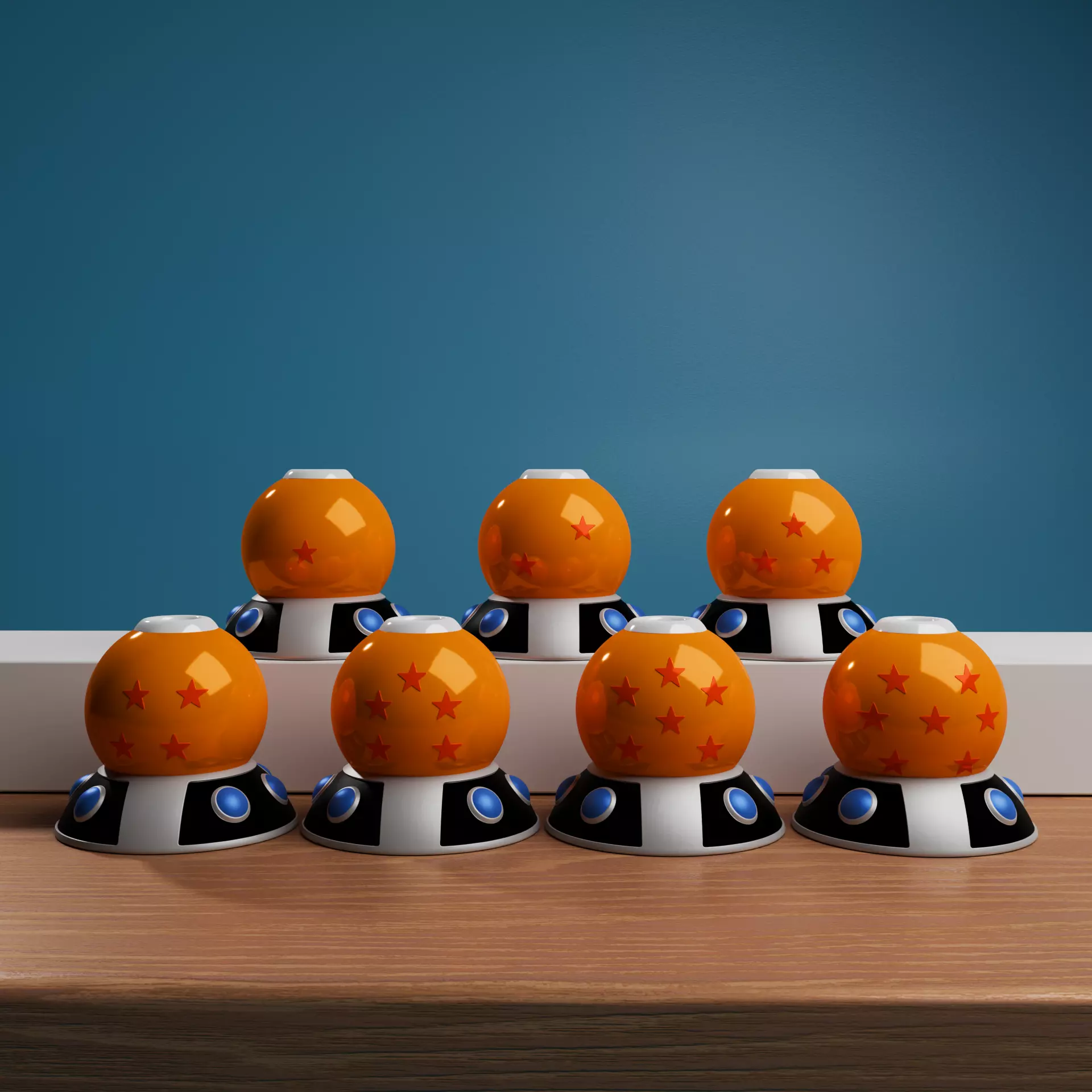 Pen holder based on the dragon balls from the dragon ball series.Scale compatible with 2cm diameter pens and pen tablets (Wacom and Huion). But feel free to print the model in the pen scale of your choice.The base has a pin for fitting the balls, allowing them to be exchanged.It has low relief detail at the bottom of the base.