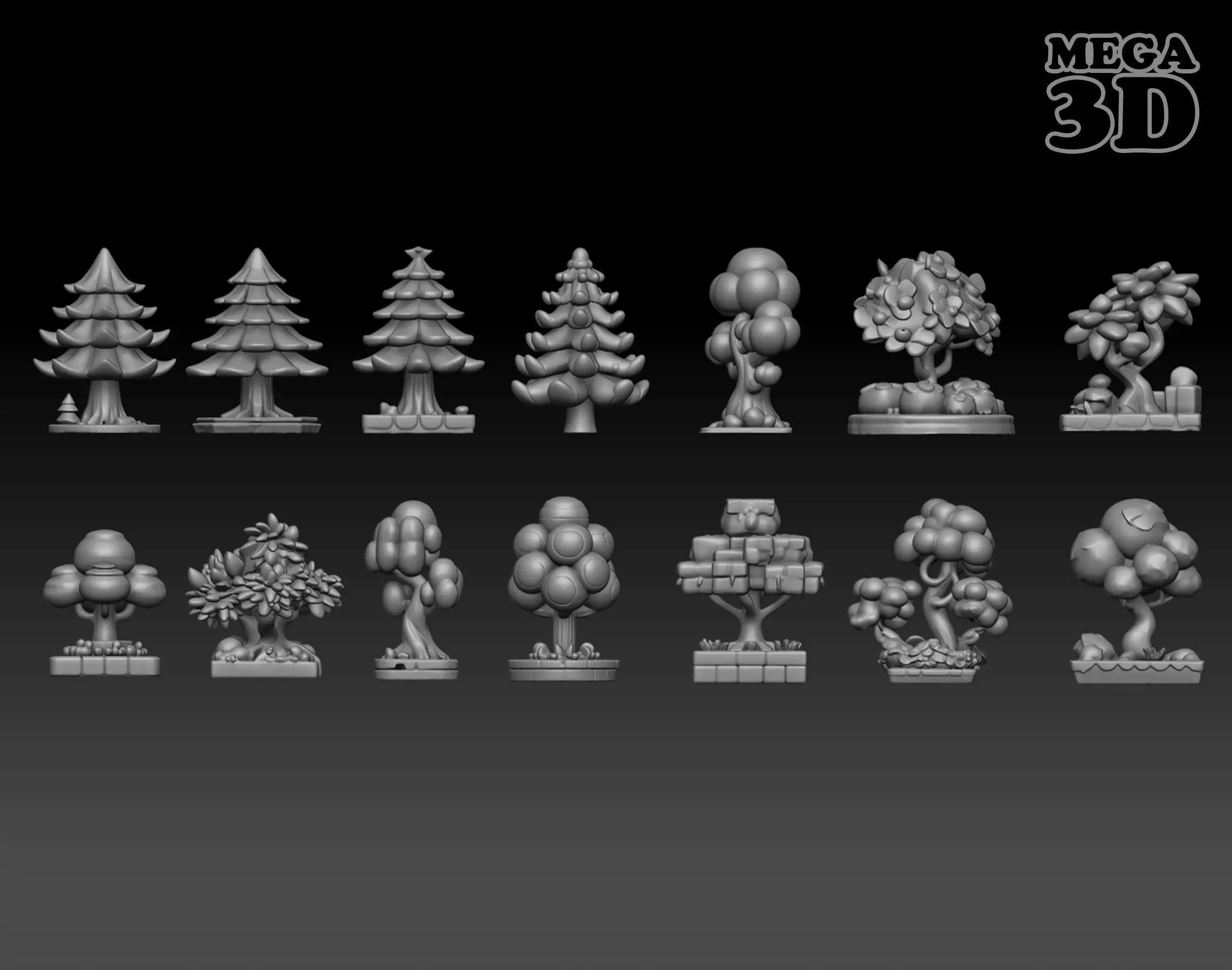 This product contains 14 Tabletop game Trees 3D Model.