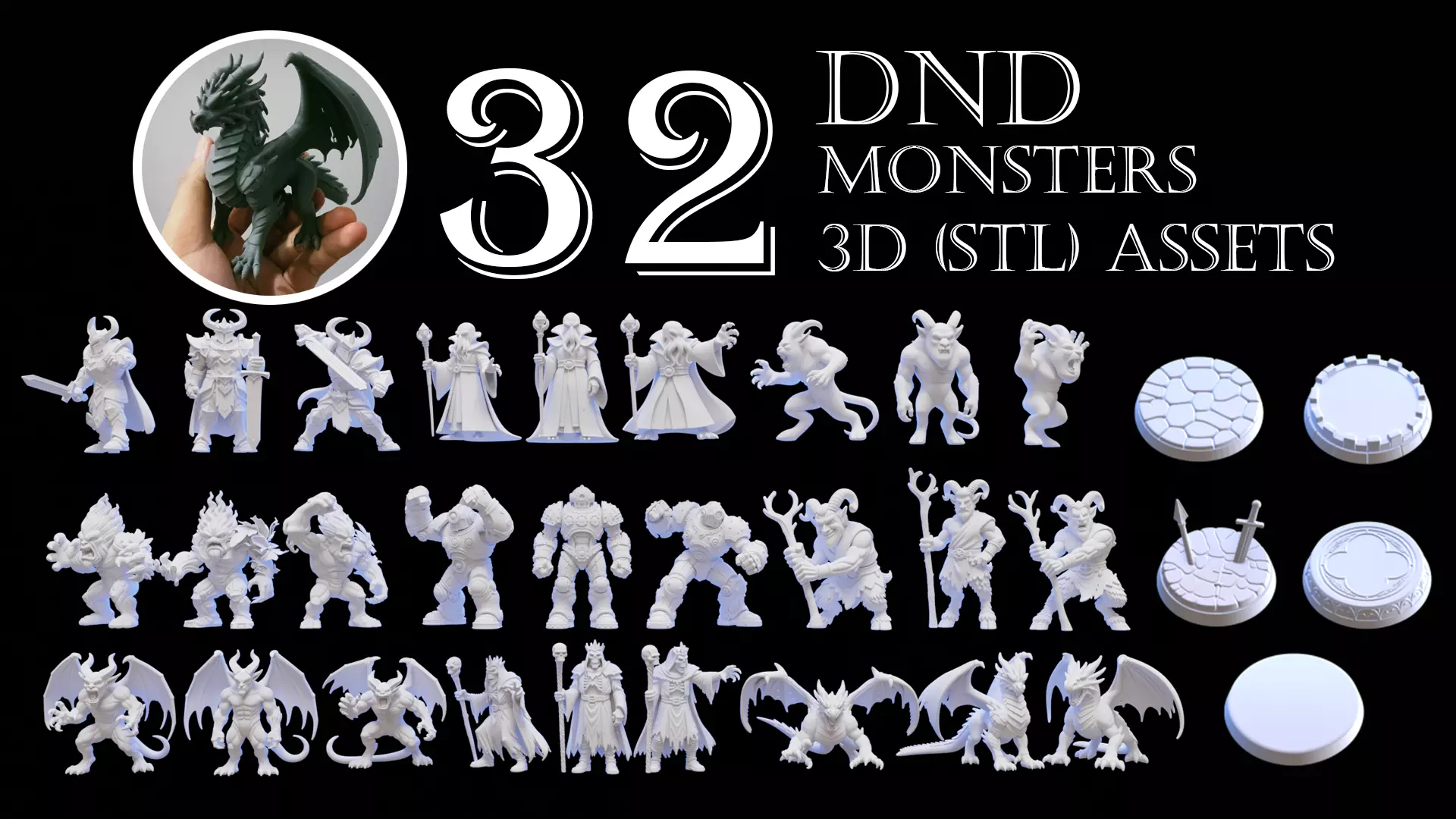 32 Printable 3D Assets (STL + .Blend) – DND Miniatures Collection