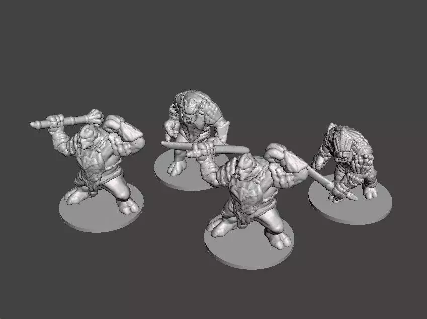 6MM SCALE ARMORED TROLL CHIEFS SET OF 4 DIFFERENT MINIATURE MODELS FOR 6MM-8MM SCALE GAMES, CAN BE USED AS TROLLS, GIANT GUARDS, PIGMEN, XENOS SOLDIERS, ALIEN INFANTRY, BARBARIANS OR ORC FORCES, AS A TOY FOR KIDS, AS A FIGURE FOR ADULTS & KIDS TO PAINT OR AS AN ORNAMENT (CAN BE UPSCALED AS NEEDED)