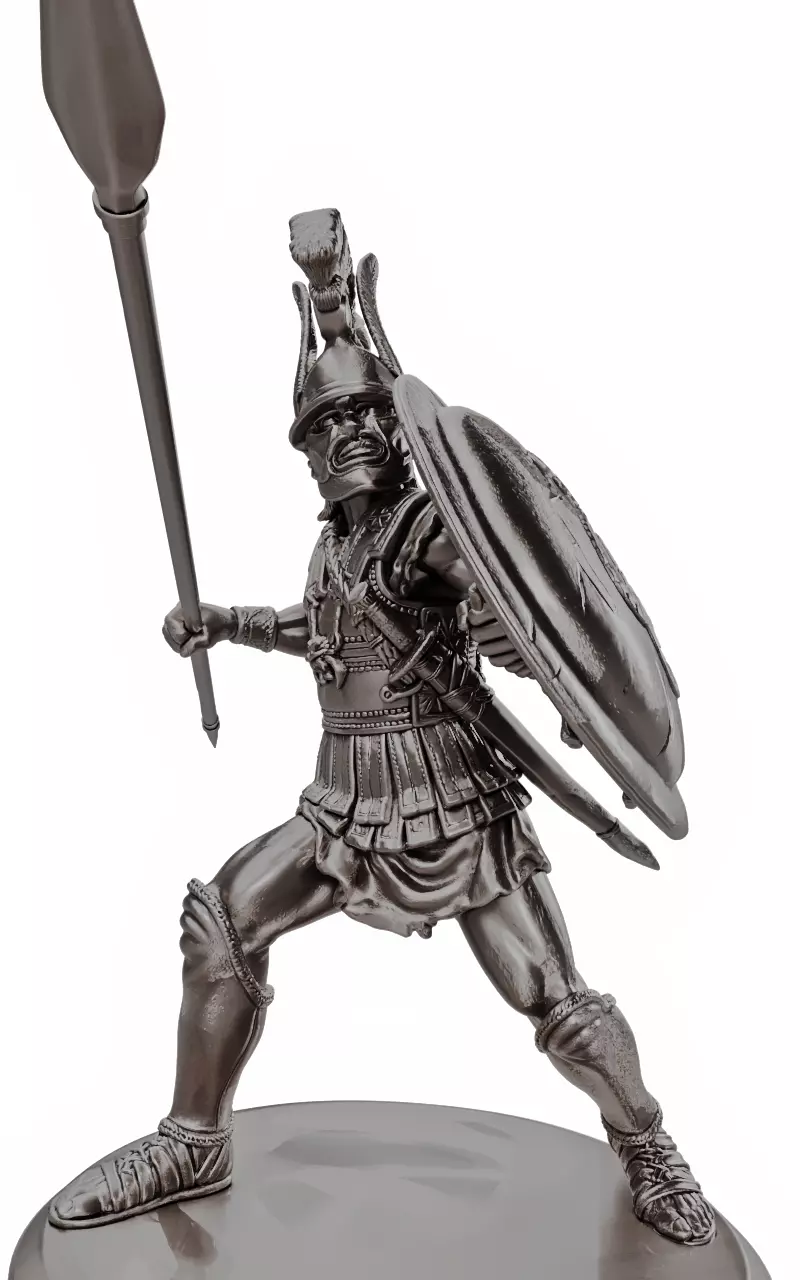 Unleash the glory of ancient warfare with this stunning 3D printable model of a classic Greek Hoplite warrior! Captured in a dynamic battle-ready stance, this fierce soldier grips a massive round shield (hoplon) in one hand for impenetrable defense and wields a long thrusting spear (dory) in the other, poised to strike down enemies in the phalanx formation. Perfectly sculpted with intricate details like flowing crested helmet, armored cuirass, greaves, and muscular anatomy, this model brings the heroic era of Sparta, Athens, and the Persian Wars to life on your desk or tabletop.Designed specifically for 3D printing enthusiasts, hobbyists, and collectors, this high-poly model is optimized for FDM and resin printers. It scales seamlessly from miniature sizes (ideal for wargames like Warhammer, Age of Sigmar, or historical reenactments) to larger statues for display. No supports needed for the base pose, but easy-to-add supports are recommended for finer details. Print in PLA, ABS, or resin for durable results – layer height of 0.1-0.2mm suggested for maximum sharpness.Whether you're building a diorama of the Battle of Thermopylae, enhancing your RPG campaigns (Dungeons & Dragons compatible), educating on classical history, or simply adding a badass warrior to your collection, this Hoplite model is a must-have. Historically accurate yet artistically enhanced for epic appeal – download now and conquer your 3D printing projects!