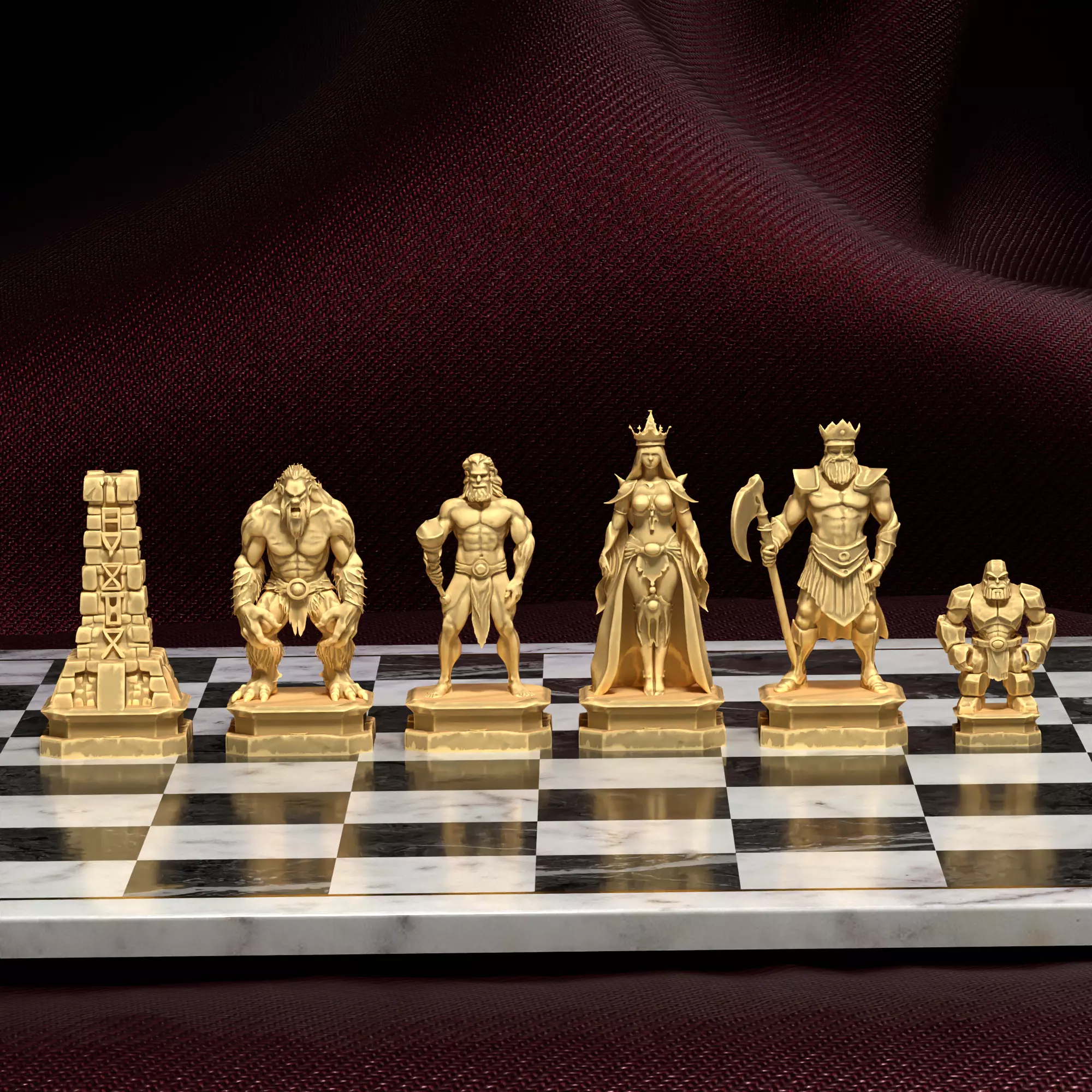 Bring the legendary battle of the Titans to life with this Ancient Titans Chess Set. Inspired by Greek mythology, each chess piece is a unique sculpture of colossal beings, perfect for collectors, fantasy lovers, and gamers. Designed with precision, this set is ready for 3D printing and digital environments.