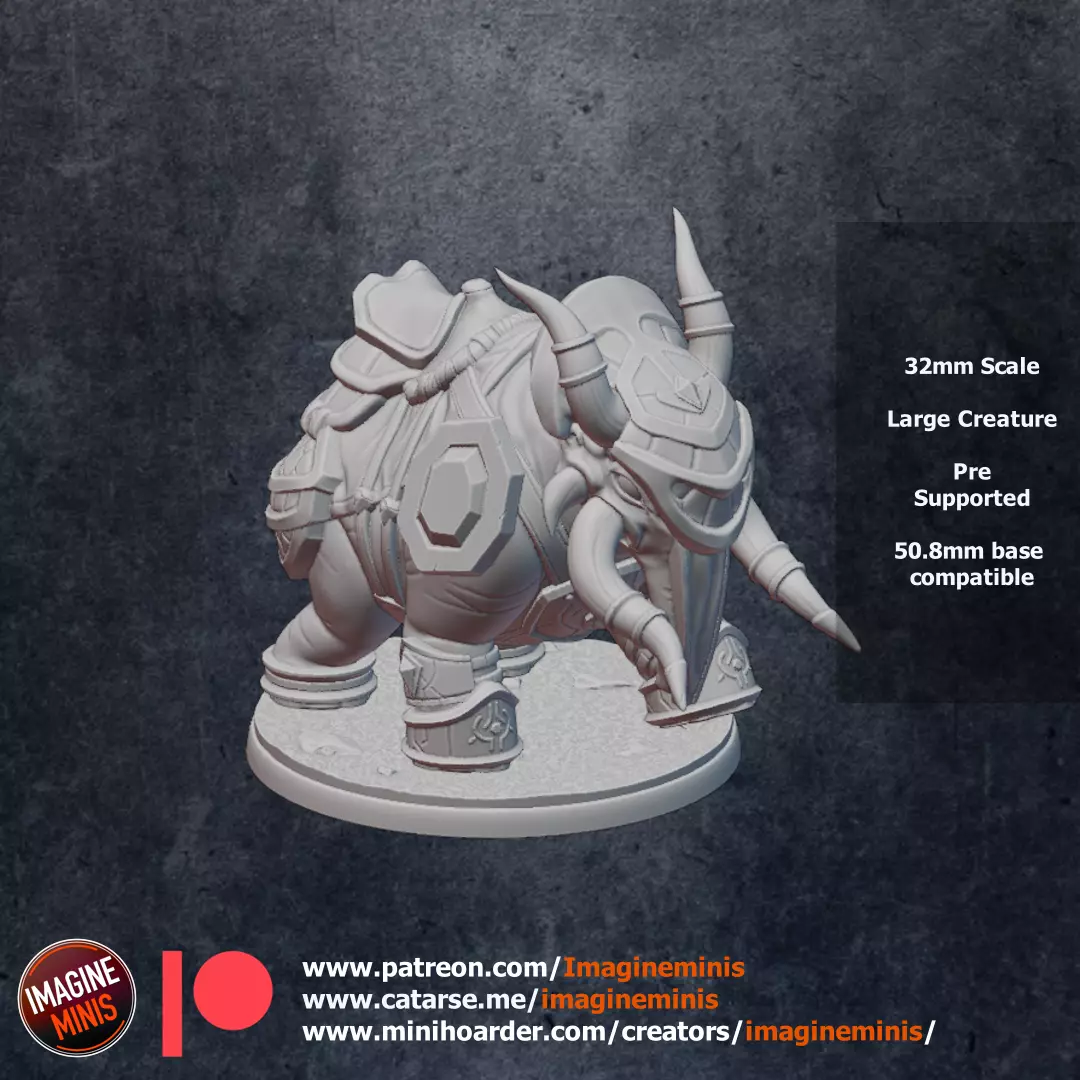 Armored Elekk Mount is a 32mm scale Large creature compatible with 50.8 mm base, included, but you can use any other.