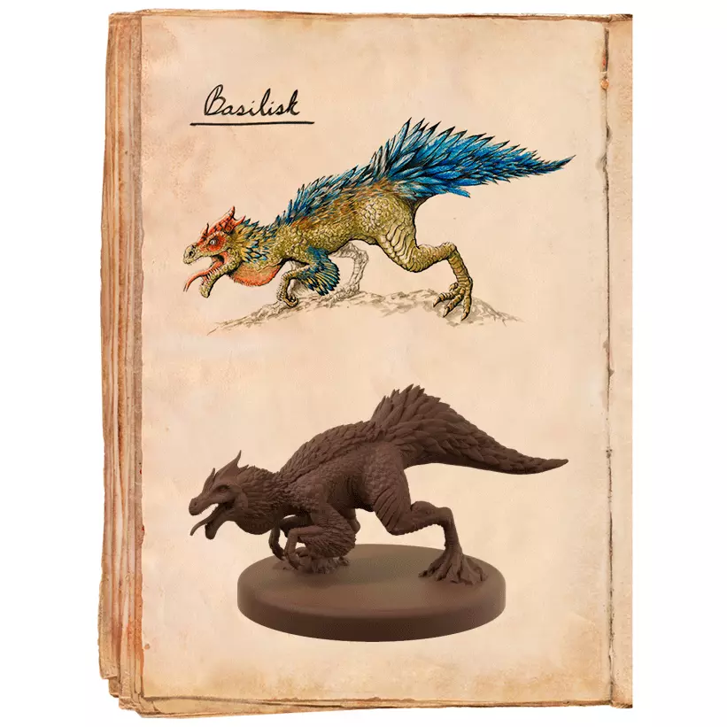I have originally come to the Terragona marketplace just to replenish my food supplies and to buy some new equipment for a journey to Africa (yes, that’s how I decided to use the money I got from baron Contarini!), but as I was browsing through all the peculiar stands and stalls with merchandise from all around the world, I noticed a big tent surrounded by an aura of mystery and also a sizeable crowd of people. The sign in front of the tent read: “Monsters of the wilderness” – needless to say, it immediately caught my attention. After waiting in a line for a while (and paying a few coins as an entrance fee) I managed to get inside this odd tent, which, as it turned out, was filled with dead bodies of various animals. Some of them were mounted as wall trophies, others were stuffed or preserved in big jars. There were more than a dozen of them, but to my disappointment, most of those unfortunate creatures were actually pretty common beasts: there was a brown bear, a very old looking lion, a huge snake of some sort, all beautiful and dangerous animals, but no “monsters”. But then I saw it – in the very middle of the tent, hidden behind other exhibits and several curious onlookers, there stood a majestic, reptile-like creature with sharp teeth and tail covered in bright blue-coloured feathers. I forgot to breathe for a few moments – I was staring into the face of a basilisk.