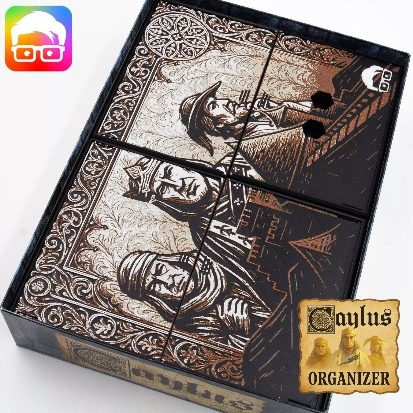 LayeredArt Lid: Introducing the amazing new LayeredArt lid! a LOOK-changer for your 3D printable organizer for Caylus (2005 retail ed.) board game! - These decorated lids take the aesthetics of your game to an epic level, creating unique, themed effects that will blow your friends' minds. Each lid is a work of art that transforms your gaming experience into something truly unique. These designs are created by switching filaments during the printing process, allowing for intricate patterns and designs. The best part? You can achieve this with any single-filament 3D printer! Detailed instructions are included, specifying the exact layer number for filament changes, making it easy for anyone to get amazing results.