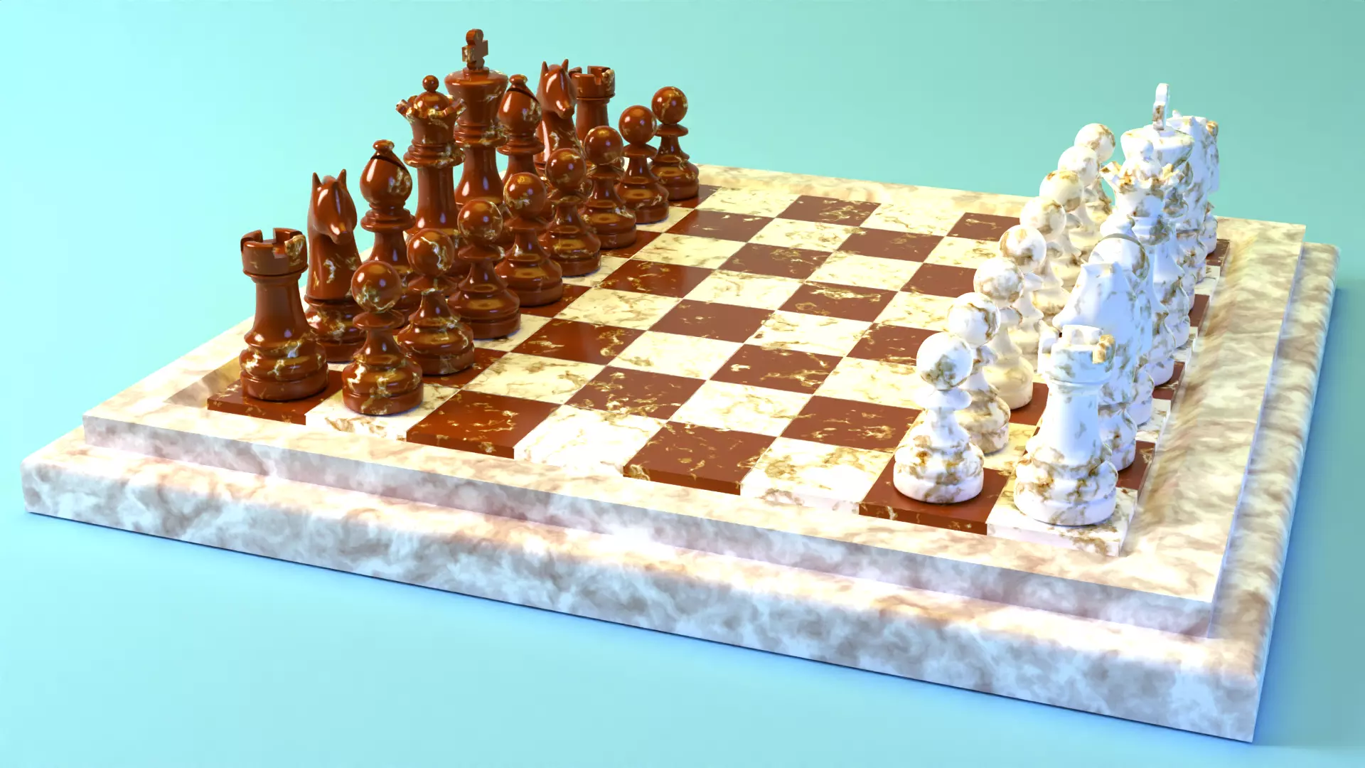 Chess is a two-player strategy board game with two opponents, called Black and White from the color of their moved pieces. It's played on a checkered gameboard with 64 squares of two contrasting colors alternating each box, on which there are 32 pieces at the game start, sixteen each color: a king, a queen, two rooks, two knights, two bishops, eight pawns. The objective is to checkmate the opponent's king by placing it under an inescapable threat of capture. Chess is one of the most played game worldwide: can be played at home, in dedicated clubs, on the internet or by mail, at both amateur and professional levels. Chess are also recognized as sport be the International Olympic Committee.
