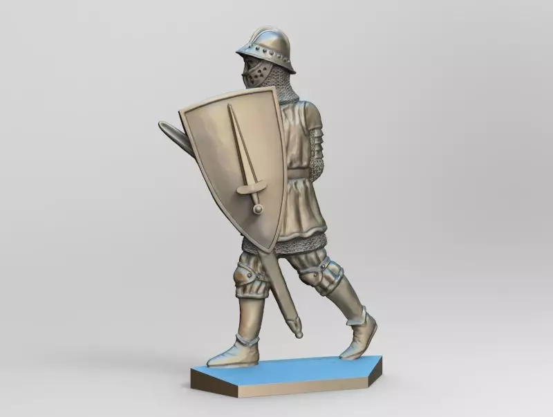 Knight 9 is a bas-relief figurine of a toy soldier for printing on a 3d printer or CNC milling, on a scale of 1:32 (54mm). The main weapon of a knight is a sword. The knights had special clothing: chain mail, a helmet and iron gauntlets. The knight's helmet was decorated with feathers or horns. The shield complemented the protection of the knight. At first, the shields were round, and then they began to be made oblong in order to protect the entire body of the owner. Lions, eagles, crosses or flowers were depicted on the shield - for decoration. Or the coat of arms of a knight. The knights were armed with a spear, a bow, a quiver with arrows, a two-handed sword, a mace, a crossbow.