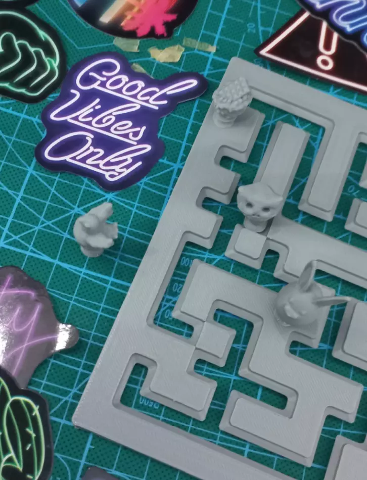 TIPS AND TRICKS.You can use the stl or gcode file with the complete maze but if you want you can make some changes. You can download the extra floor base and just apply it to the printed maze or edit it using the separated parts I made, but if you want you can create your own version. Let's see:A suggested modification, but not necessary, is to raise the labyrinth by 0.3mm by applying something under each corner after printing it (or print my extra base piece), and then close the base with a temporary floor to allow all the pieces to slide more smoothly without shaking the playing field (as if there is always a desk or a plane under the game). Paper or cardboard will be ok but hey we have my stl pieces of the maze! It's much better :D It may be helpful to keep the option to remove and change pieces, I designed it to upgrade the pawns in the future! You can create your own pawns if you want to try!WILL IT WORK WITH MY 3D PRINTER? NEW IN 3D PRINTING? OK!Important note: the holes are a bit abundant, so everything will slide smoothly without needing particular printing parameters or post-production. Just print and play. If you want to tighten things up for a snug and perfect fit with for specific printer, as written in this guide, I recommend reducing the height of the pieces by slightly squashing them, increasing the brim at the base of the pieces, or printing an extra floor for (I provided all the files).