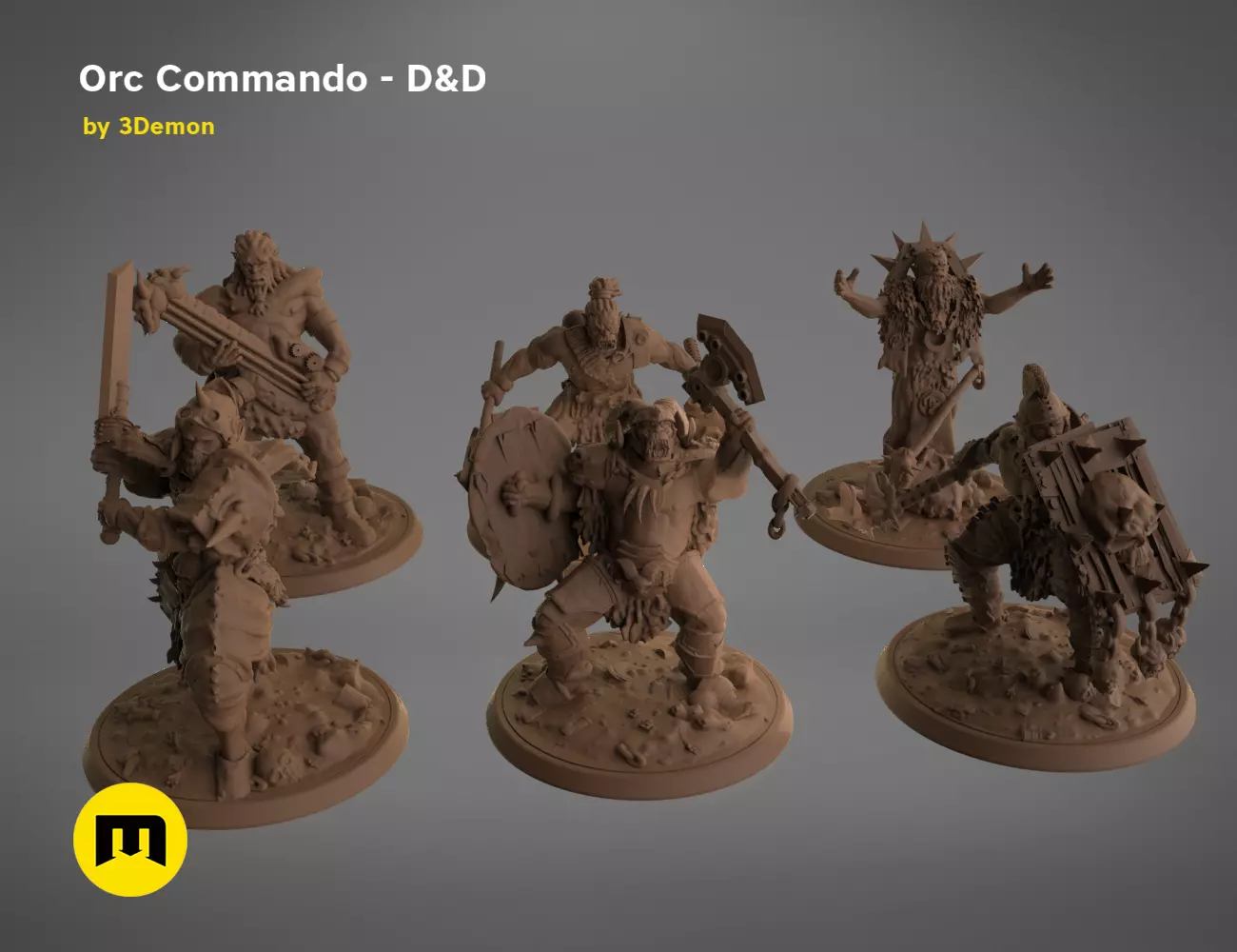 These are a digital 3D printable models of Orc Commando (D&D Set).