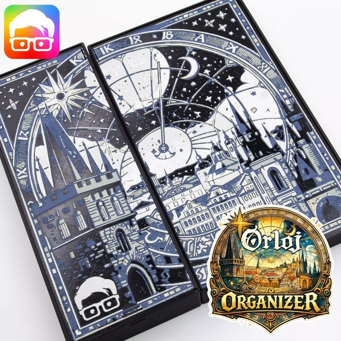 LayeredArt Lid: Introducing the amazing new LayeredArt lid! a LOOK-changer for your 3D printable organizer for Orloj board game! - These decorated lids take the aesthetics of your game to an epic level, creating unique, themed effects that will blow your friends' minds. Each lid is a work of art that transforms your gaming experience into something truly unique. These designs are created by switching filaments during the printing process, allowing for intricate patterns and designs. The best part? You can achieve this with any single-filament 3D printer! Detailed instructions are included, specifying the exact layer number for filament changes, making it easy for anyone to get amazing results.