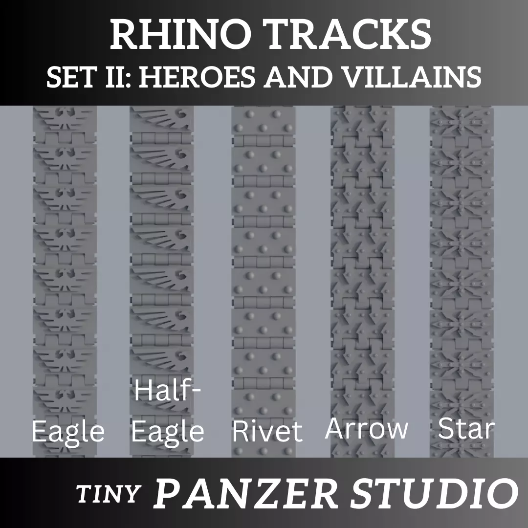 The next set of custom tracks to replace tracks on any rhino-based vehicle. I'll leave it up to you to decide who are the heroes and who are the villians.