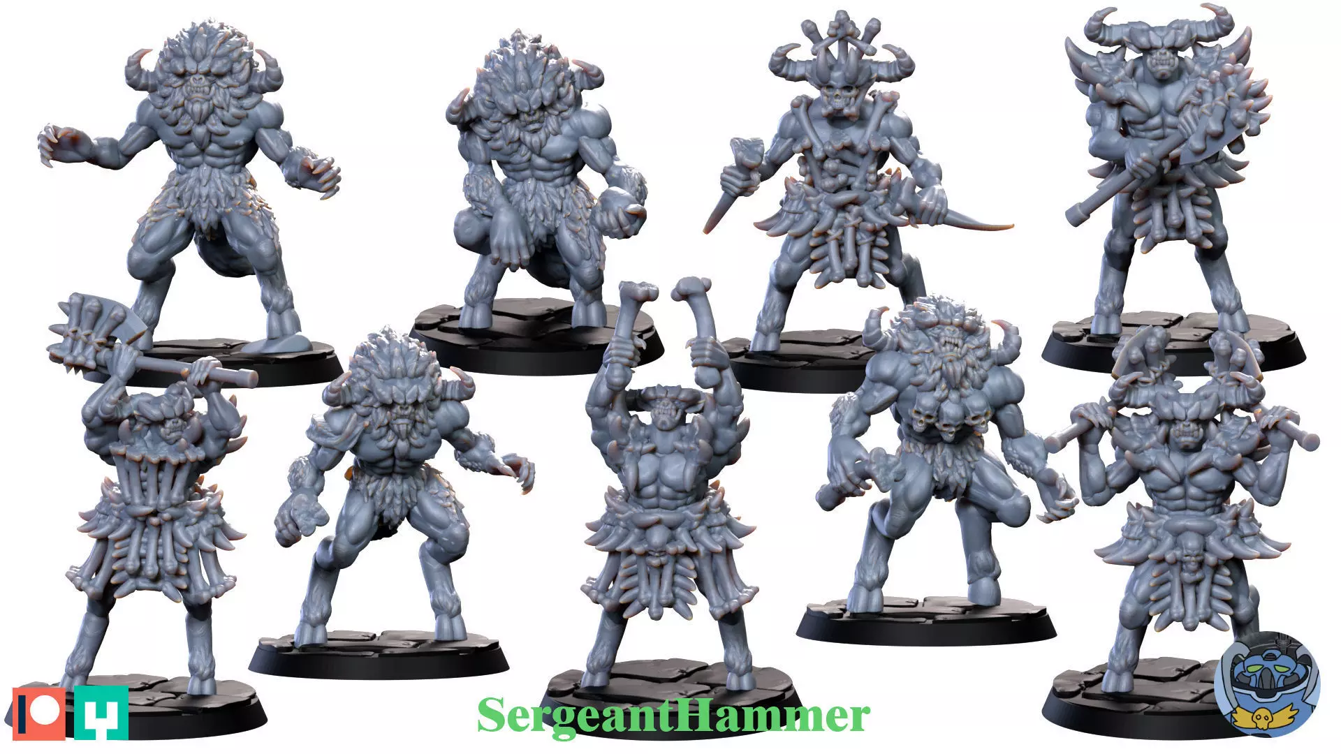 Each miniature features powerful anatomy, aggressive poses, and heavy bone armor crafted from the remains of past victims. Massive horns, bone clubs, and primitive weapons make them ideal for dark fantasy settings, dungeon encounters, or savage warbands.