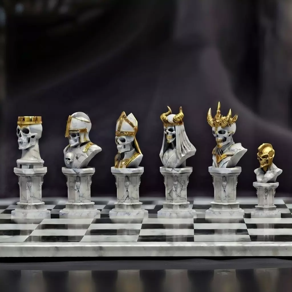 Skull Gothic Chess Pieces STL – Dark Fantasy 3D Printable Chess Bust Set with 6 Unique Models