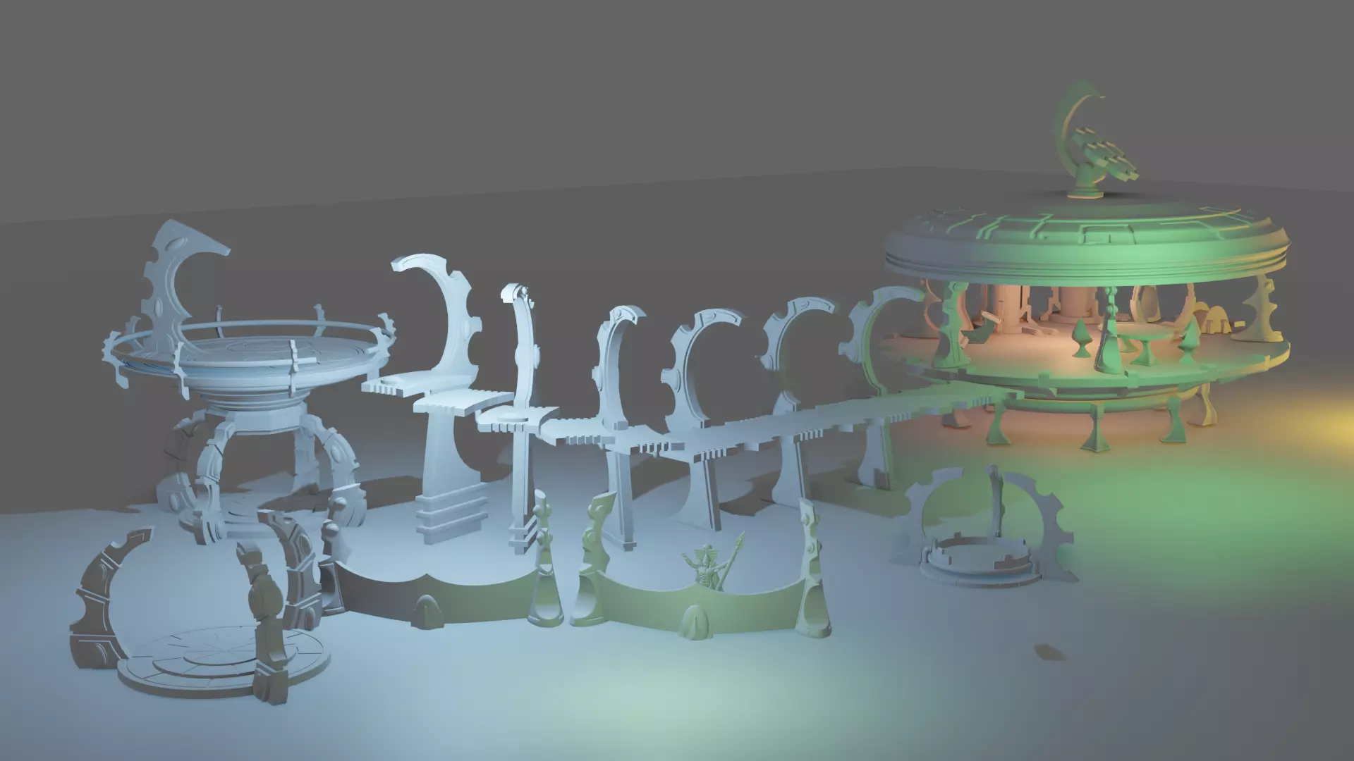 This is a complete bundle for space elf terrain. You will get a landing pad, headquarters, a bridge, some gates and walls. You can put them together in diferent positions. Also there are some extra accessories to spice things up. Every file have been printed on my ender 3 with default options and it looks good even in 0.28 layer but i suggest 0.2 with 12% infill, rafts and regular supports with 8%. You will not have any problems to print any of these. It is scaled for 28mm and 32mm miniatures. You can use this terrain as a base for your space elfs or for any sci fi dnd sessions. You can use the rafts as a base to stabilise your terrain. The walls are perfectly sized to be used as scatter terrain walls or as walls to the headquarter. Any miniatures show on pictures are used as a scale and are not included. The terrain is massive you can fill one half of the table or use some parts of it seperately.