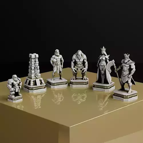 Keywords: titans chess, greek gods chess, mythology chess set, barbarian chess, titan figures