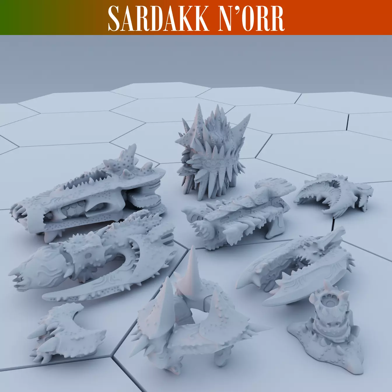 These 3D print-ready files include the following ships customized for the Sardakk N'orr: