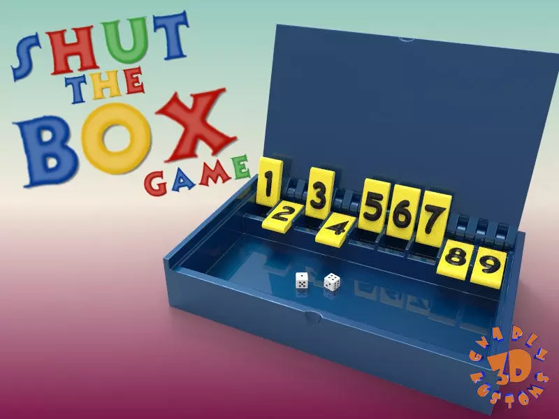 Shut The BOX Game, also called Blitz, Bakarat, Canoga, Klackers, Batten Down the Hatches, Kingoball, Trictrac, Cut Throat, Fork Your Neighbor, and Jackpot, is a game of dice for one or more players, commonly played in a group of two to four for stakes. Traditionally, a counting box is used with tiles numbered 1 to 9 where each can be covered with a hinged or sliding mechanism, though the game can be played with only a pair of dice, pen, and paper. Variations exist where the box has up to 10 or 12 tiles. Alternatively, dominoes can be used for the tiles -- this also provides the option of using up to six dice if a Double 18 domino set is used. A deck of cards can also be used as tiles, and if so desired a complete conventional Western deck with the jokers (54 cards) can provide for the use of up to nine dice. As described below under Variants, the dominoes or cards can also be used in place of the dice if so desired.