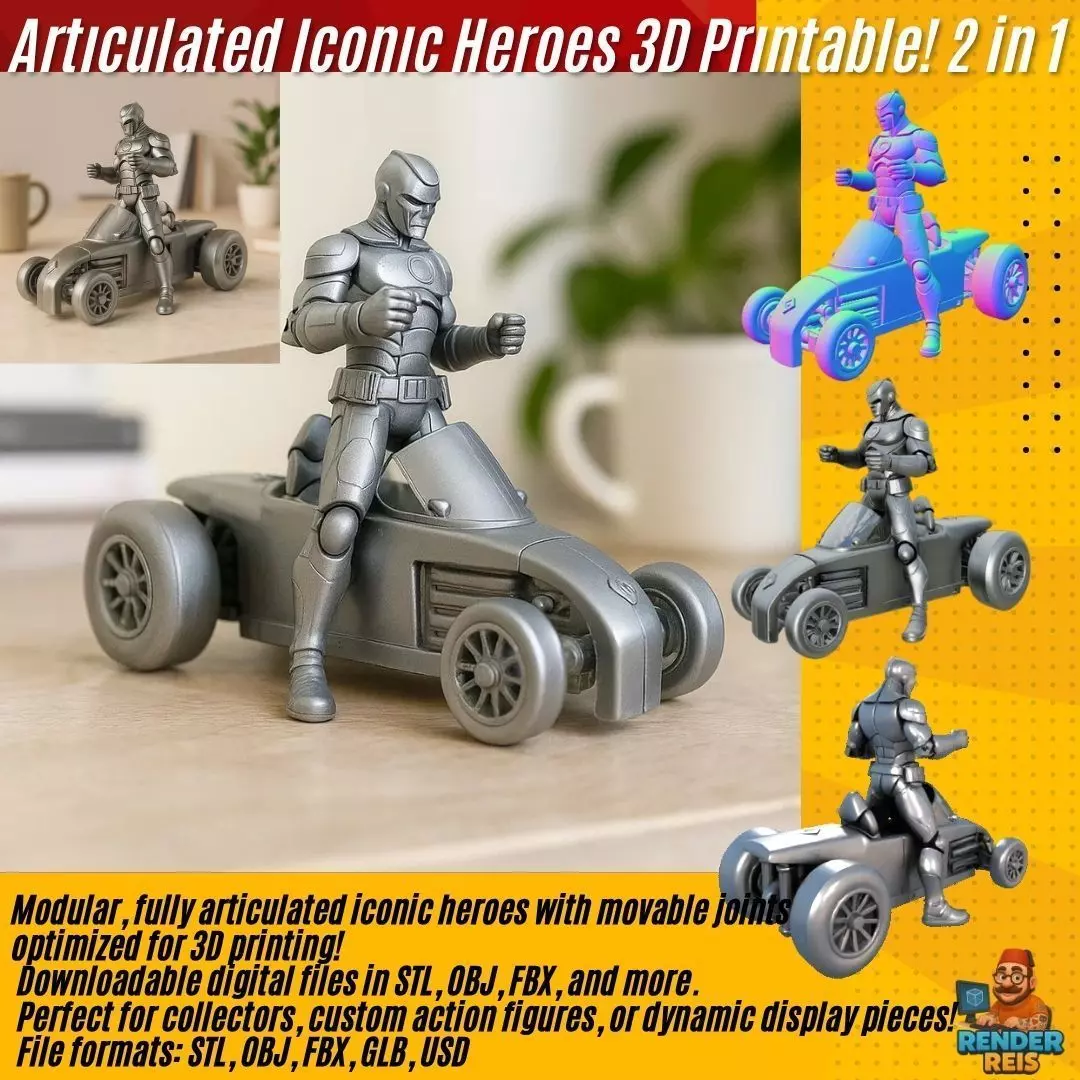 Charge into the future with this thrilling 3D printable combo – a battle-ready armored superhero and his sleek, open-wheel racing machine! Inspired by retro-futuristic comics and sci-fi classics, this model duo combines power, style, and action in one dynamic set.