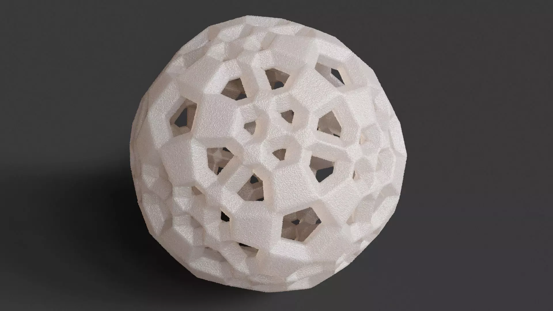A dodecahedron solid transformed by edge remeshing to a quasi-regular polyhedron. A perfect object for 3d printing as a mathematical showpiece, or a unique fidget toy.