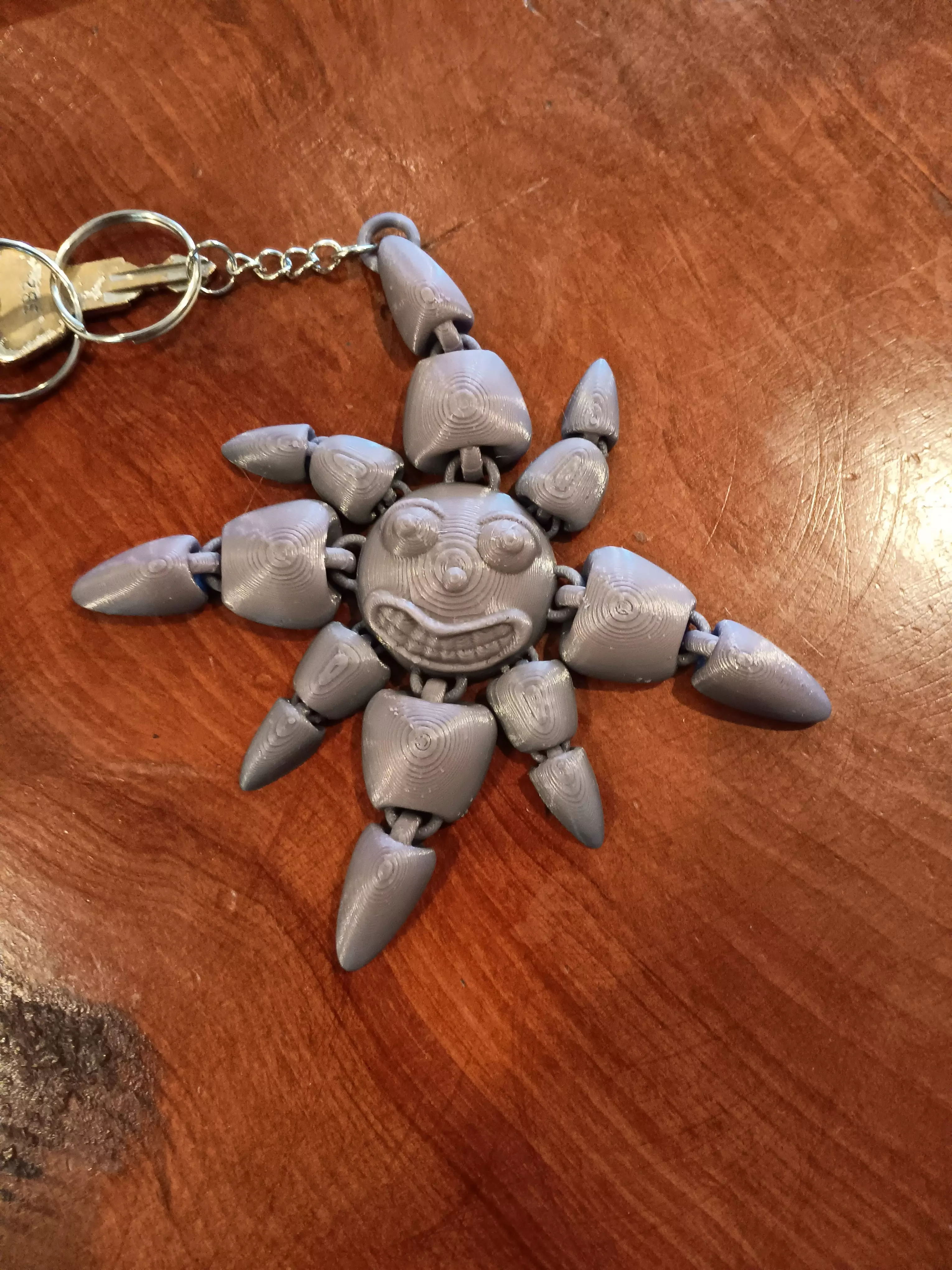 Explore this creatively designed, 3D model from Timmy Tombstone - a flexi smiling sun keychain that satisfies both your practical needs and artistic interests. This is not just a key holder; it's a fully articulated, print-in-place masterpiece, designed as a fun toy as much as a useful tool. All the links in the chain are connected, printed in one piece, offering you an innovative product for 3D printing technology. Detailed imagery provided offers a comprehensive visual of this sun keychain. The bright and sunny design instills a playful vibe, making it an ideal gift for kids and adults alike. Our designers are committed to combining functionality, creativity, and quality into one model. Discover more such unique, print-in-place 3D models.