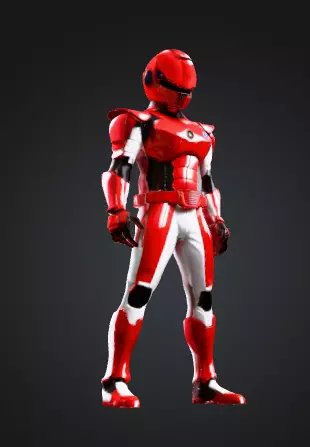 This high-quality 3D model features a red and white sci-fi armored hero designed with a sleek, modern tokusatsu-inspired aesthetic. The character includes a fully detailed helmet, glossy armor plates, segmented body panels, and textured undersuit elements that give it a dynamic and realistic finish. The model showcases clean topology, stylized proportions, and visually striking color contrast, making it ideal for use in games, cinematics, VR experiences, collectibles, or concept art.